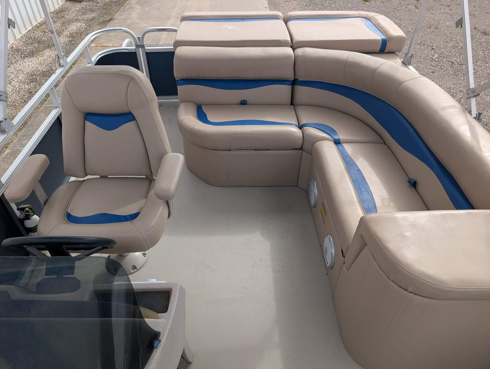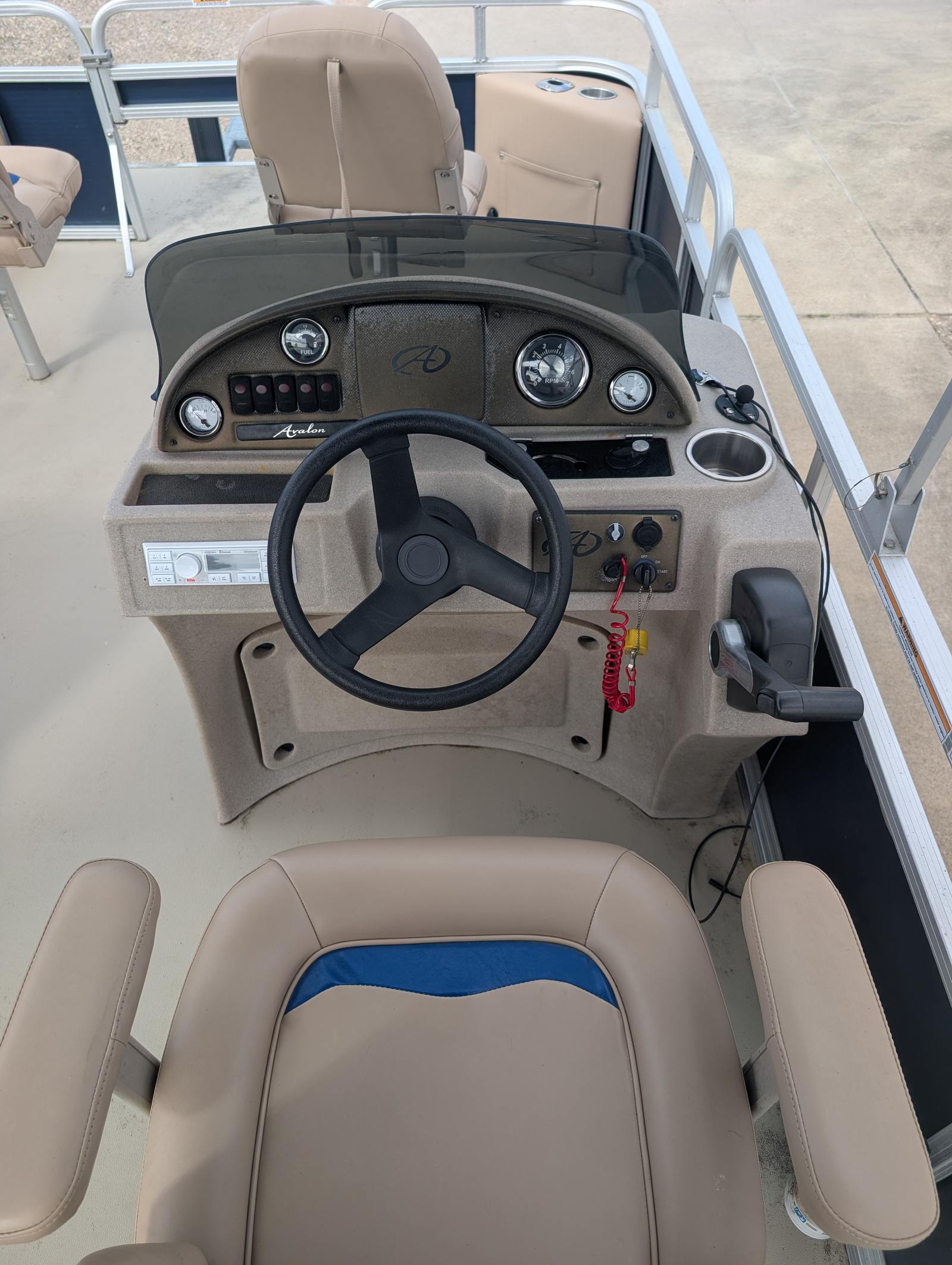 The Avalon LSV RF-18 comes equipped with a selection of special features designed to enhance your time on the water. The Bimini top offers shade and protection from the sun, creating a comfortable environment for relaxing or socializing, even on the brightest days. Enjoy your favorite tunes with the Bluetooth stereo system, which allows you to stream music wirelessly and set the perfect mood for any occasion. For anglers and those who love exploring, the Minn Kota I Pilot Trolling Motor provides precise control and effortless navigation, making fishing trips and leisurely cruises more enjoyable than ever.This pontoon boat’s layout is designed for maximum comfort and convenience, with spacious seating areas that invite conversation and relaxation. The open deck plan ensures easy movement throughout the boat, while the sturdy construction and quality materials reflect Avalon’s commitment to safety and longevity. As a used Avalon boat for sale, the LSV RF-18 offers a proven track record of performance and reliability, giving you peace of mind as you embark on new adventures.