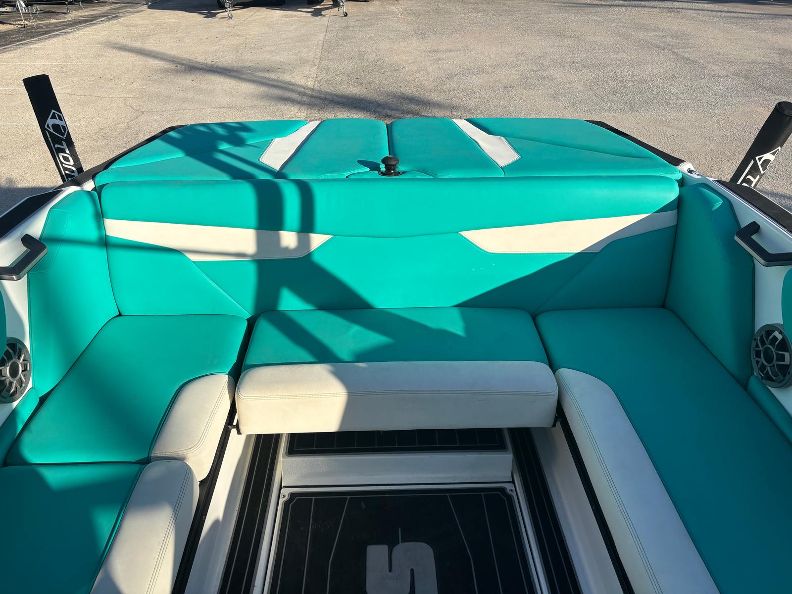 At the heart of the Axis A22 is a powerful single engine boasting 345 horsepower, ensuring you have all the muscle needed for high-energy wakeboarding, skiing, and tubing sessions. The engine’s impressive output translates to rapid acceleration, smooth cruising, and the ability to create the perfect wake for riders of all skill levels. With just 87 hours on the engine, you can trust in its reliability and longevity, making this Ski & Wakeboard boat for sale a smart investment for water sports enthusiasts. Whether you’re looking to master new tricks or simply enjoy the rush of speed, the Axis A22’s performance capabilities are sure to impress.