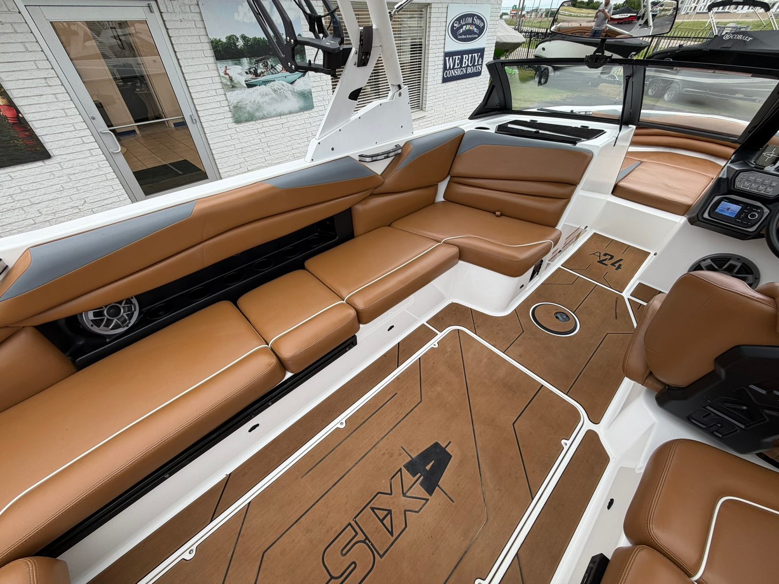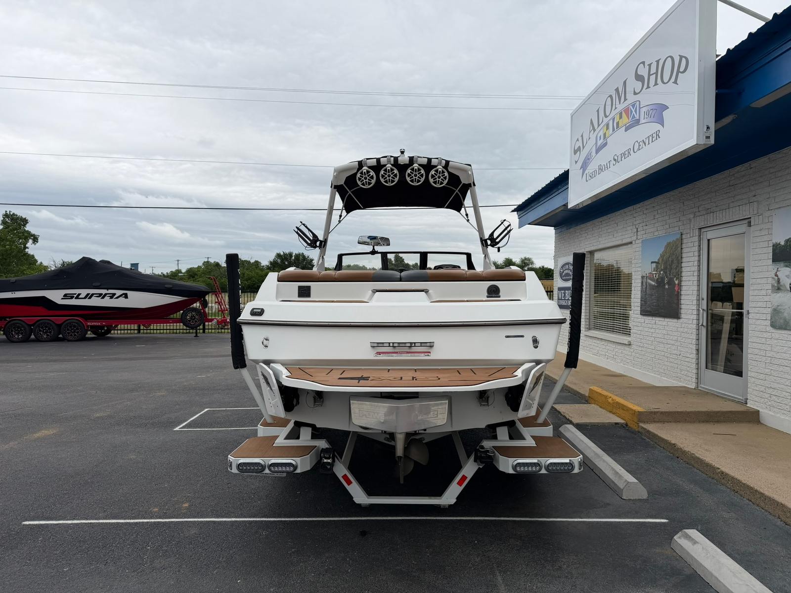 Now available at our Used Boat Super Center in Lewisville, this 2020 Axis A24 is a large, surf-focused wake boat known for producing massive waves and offering incredible value. Finished in a clean all-white gelcoat with a brown interior, this A24 is powered by the Monsoon M5 direct-injected V8 producing 350 horsepower with only 126 hours.