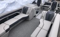 BenefitsOwning the Barletta Corsa 25UC means embracing a lifestyle of fun, relaxation, and social connection. The spacious layout and premium furniture invite you to lounge in comfort, whether you’re sunbathing, enjoying a picnic, or sharing stories with friends. The advanced steering and digital controls make piloting the boat a breeze, allowing you to focus on the joy of the journey rather than the mechanics. The midship storage keeps your essentials within easy reach, so you can spend more time enjoying the water and less time searching for gear. The sleek design and blackout package ensure you’ll stand out wherever you go, making every outing a memorable event.