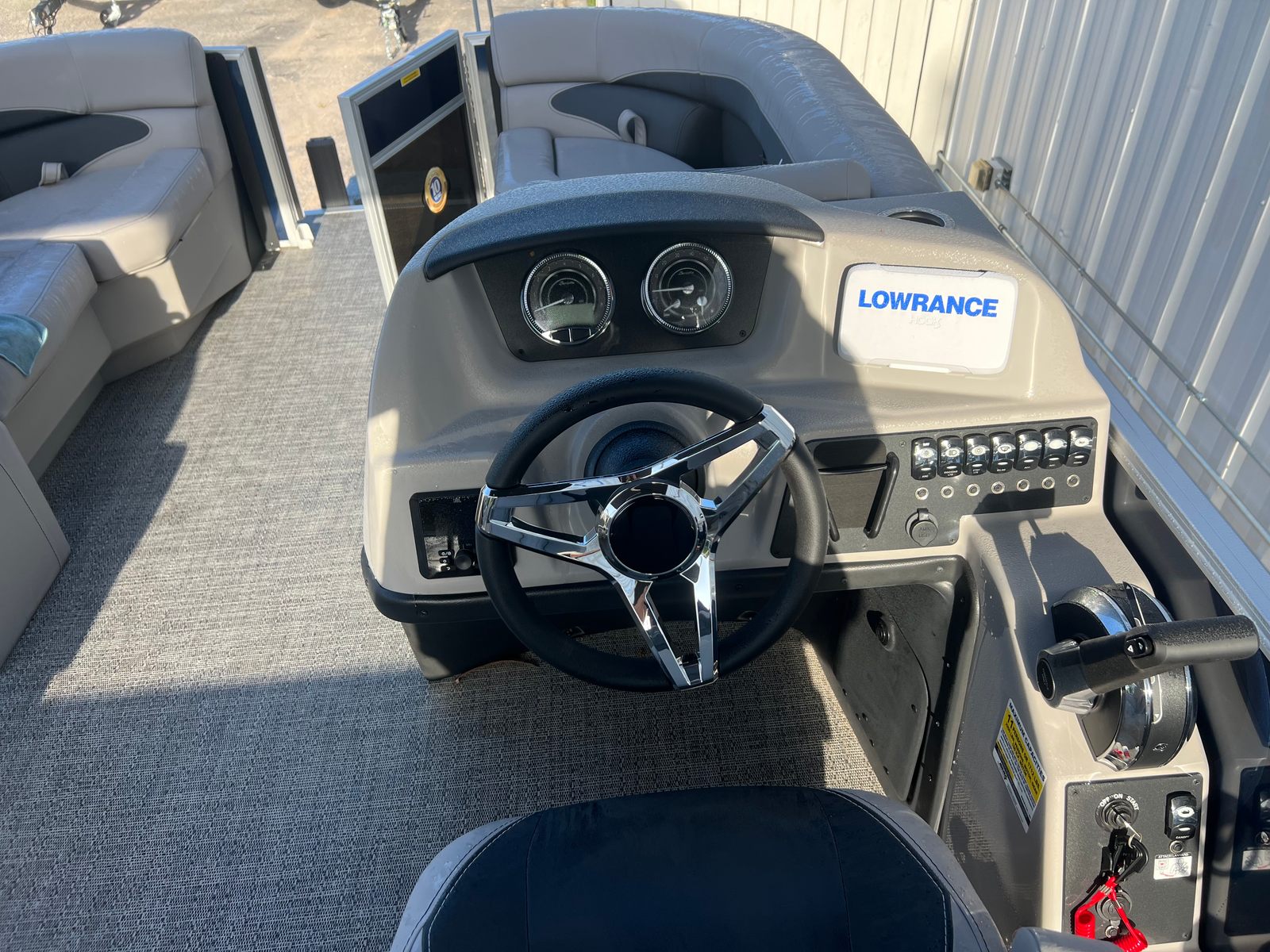 The 2025 Barletta Aria A20UC is a brand-new pontoon boat that measures just over 21 feet in length, offering the perfect balance of spaciousness and maneuverability. Its modern design and thoughtful layout make it ideal for both relaxing cruises and lively gatherings on the water. The Aria A20UC’s contemporary aesthetic is enhanced by the striking Blue Sapphire railskin color, giving it a bold and sophisticated presence that will turn heads at any marina or lake.
