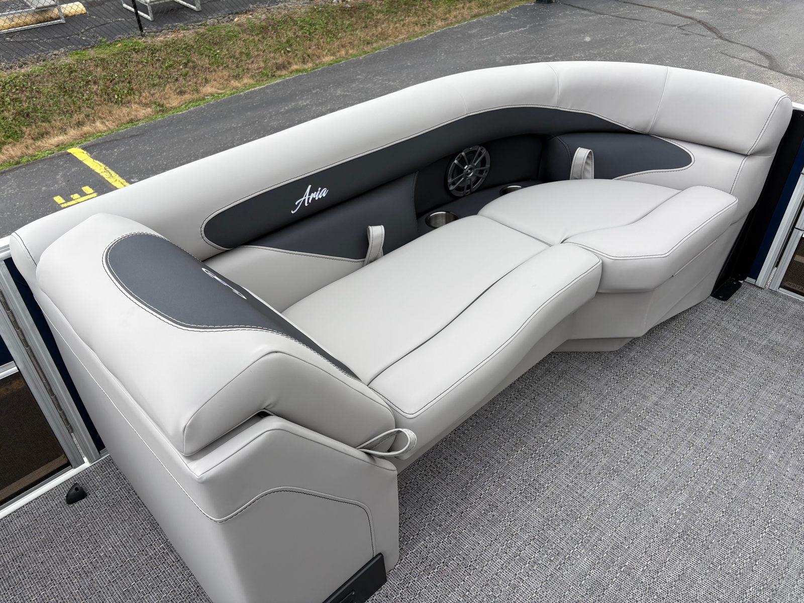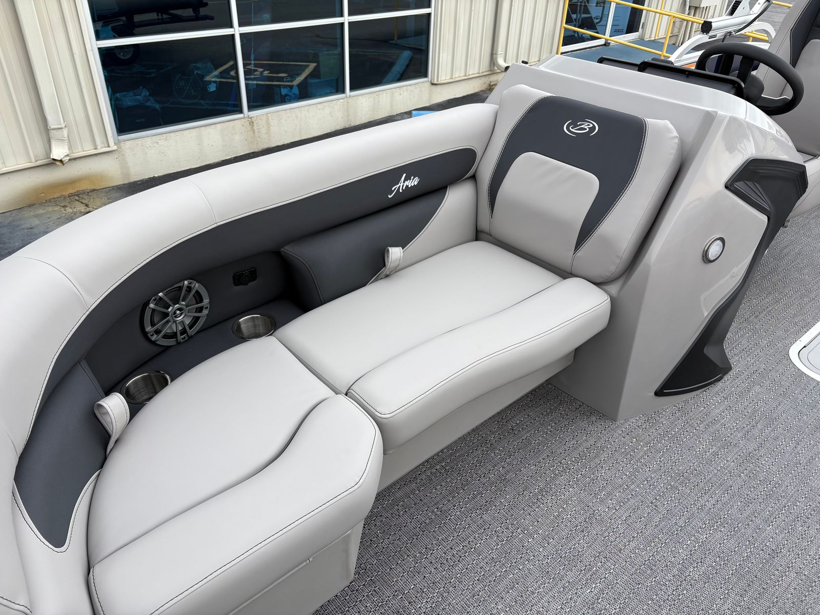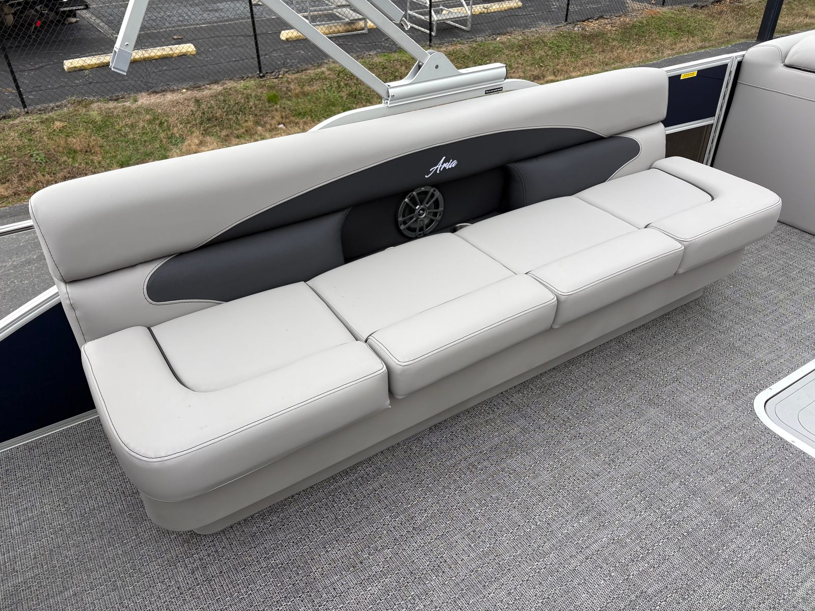 The Barletta Aria A22CC is engineered for convenience as well as enjoyment. The in-floor midship storage with rod storage is perfect for anglers who want to keep their equipment safe and out of the way, while the onboard battery charger ensures your boat is always powered up and ready for spontaneous adventures. The stainless steel prop and Mercury mechanical rigging contribute to low-maintenance operation and long-lasting reliability, so you can spend more time on the water and less time worrying about upkeep.Docking and maneuvering are made easier thanks to the responsive handling provided by the Triple Toon Package Aria, making this pontoon a great choice for both seasoned boaters and newcomers alike. The durable flooring and high-quality furniture materials are designed to withstand the elements, ensuring your investment looks great and performs beautifully for years to come.