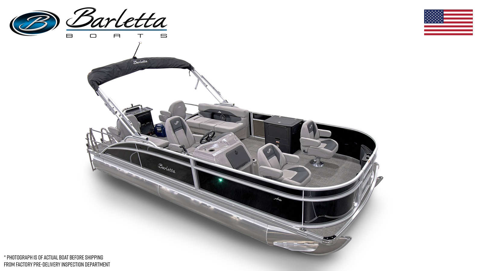 The Barletta Aria A22F is packed with special features that elevate your boating experience. The Railskin Color Aria in Black Diamond gives the pontoon a sophisticated and striking appearance, while the Tempest Gray furniture color creates a modern, inviting atmosphere for passengers. The Amore Gray flooring is both stylish and practical, providing a comfortable surface that’s easy to maintain.One of the standout features is the Triple Toon Package Aria, which enhances stability and performance, making this pontoon ideal for larger groups and more dynamic activities. The in-floor midship storage (available with the Triple Toon package) offers convenient space for stowing gear, water toys, or personal items, keeping the deck clutter-free and organized. At the helm, the Hook 5 GPS system ensures you stay on course and explore new destinations with confidence.