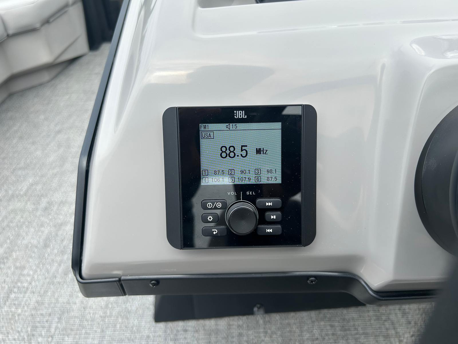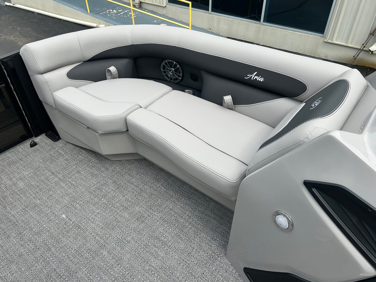 The Barletta Aria A22QC-Platinum is packed with features designed to elevate your boating experience. The Triple Toon Package Aria provides enhanced buoyancy and stability, making it ideal for a variety of water conditions. The furniture, finished in Tempest Gray, offers both comfort and contemporary style, creating an inviting space for relaxation and socializing. The Railskin Color Aria in Black Diamond, complemented by the Railskin Accent Aria in Gray Moonstone, gives this pontoon a striking and modern appearance. The Blackout Package Aria adds a touch of sophistication, ensuring your boat stands out wherever you go.The Amore Gray flooring is not only visually appealing but also practical, providing a durable and easy-to-clean surface that stands up to the demands of active days on the water. The Simrad 7" G07 XSE navigation system brings advanced technology to your fingertips, offering intuitive controls and clear displays to help you navigate with confidence.