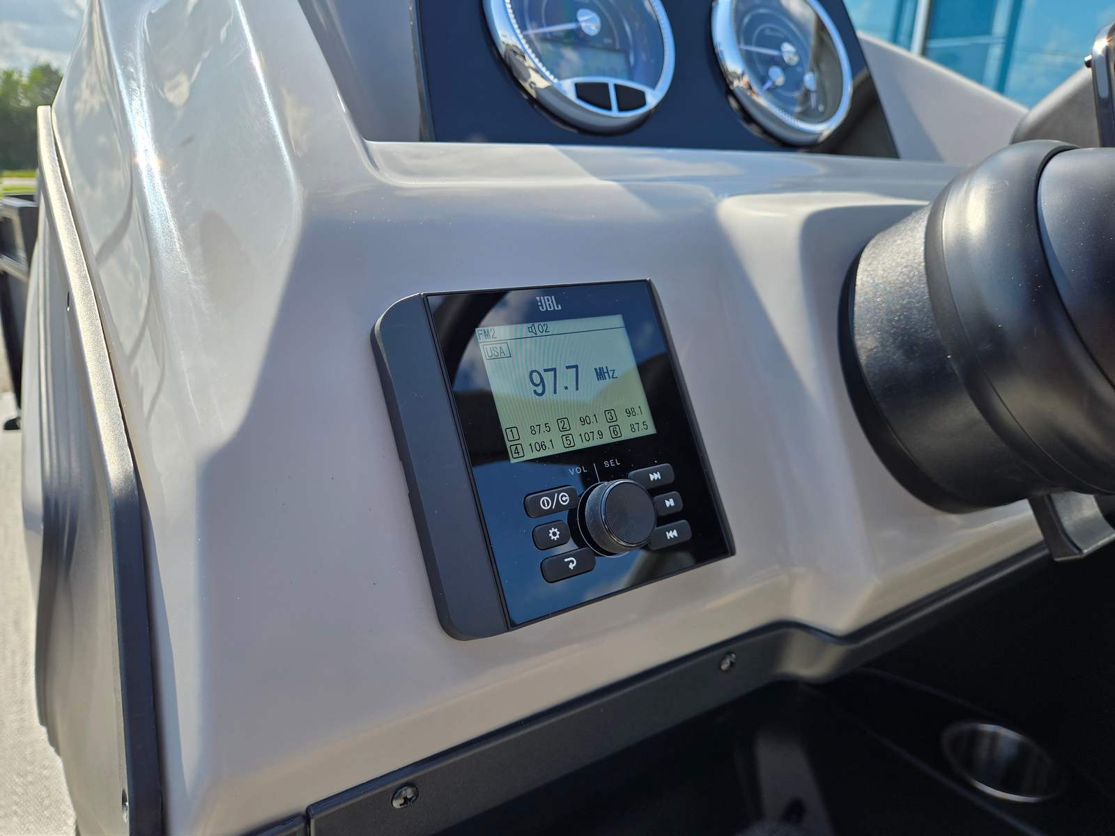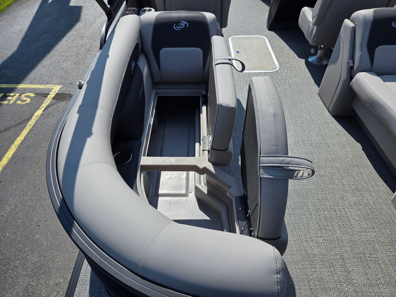 The Barletta Aria A22QC-Platinum is as practical as it is stylish. Its thoughtfully designed layout makes storage and organization a breeze, allowing you to keep gear, snacks, and personal items neatly stowed away. The ease of docking and maneuvering, thanks to the power assist steering and responsive engine, means you can confidently approach marinas, docks, and tight spaces without stress. The efficient Mercury FourStroke engine is engineered for optimal fuel economy, helping you spend more time on the water and less time refueling.Maintenance is straightforward, with durable materials and finishes that are built to withstand the elements. The sturdy construction and triple toon package provide added peace of mind, ensuring your investment remains in top condition for years to come. Whether you’re a seasoned boater or new to pontoon ownership, the Aria A22QC-Platinum offers a hassle-free experience that lets you focus on enjoying every moment.