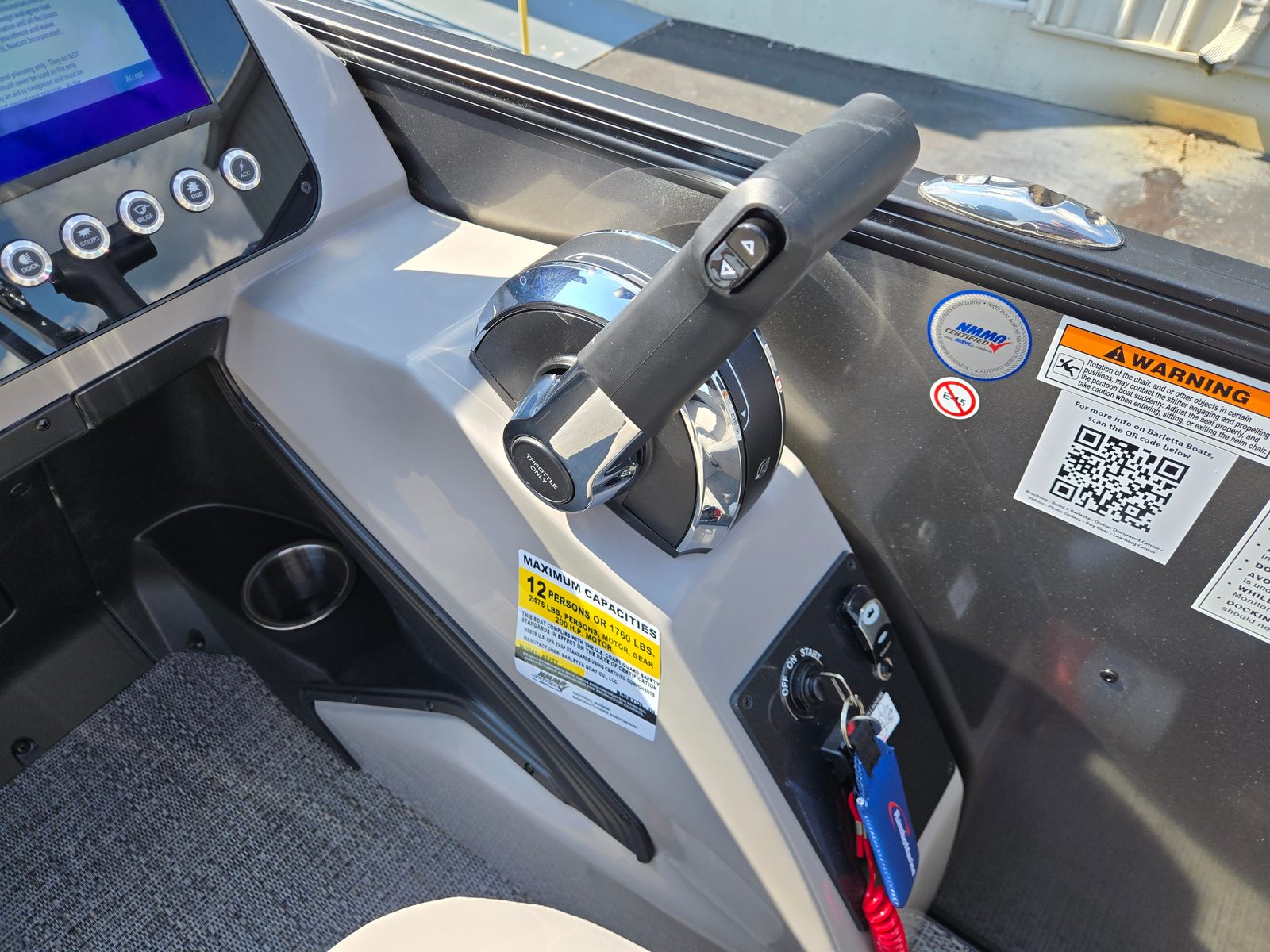 Powering the Barletta Aria A22QC-Platinum is a robust Mercury (M) 200L FourStroke engine, delivering an impressive 200 horsepower. This single-engine setup ensures smooth acceleration, responsive handling, and reliable performance across a variety of water conditions. The rig engine is equipped with a stainless steel prop, enhancing durability and efficiency while maximizing thrust and minimizing drag. Whether you’re cruising at a leisurely pace or picking up speed for water sports, the Aria A22QC-Platinum offers a dynamic and exhilarating ride. The pre-rig Mercury mechanical system with power assist makes steering effortless, allowing you to navigate with confidence and precision.