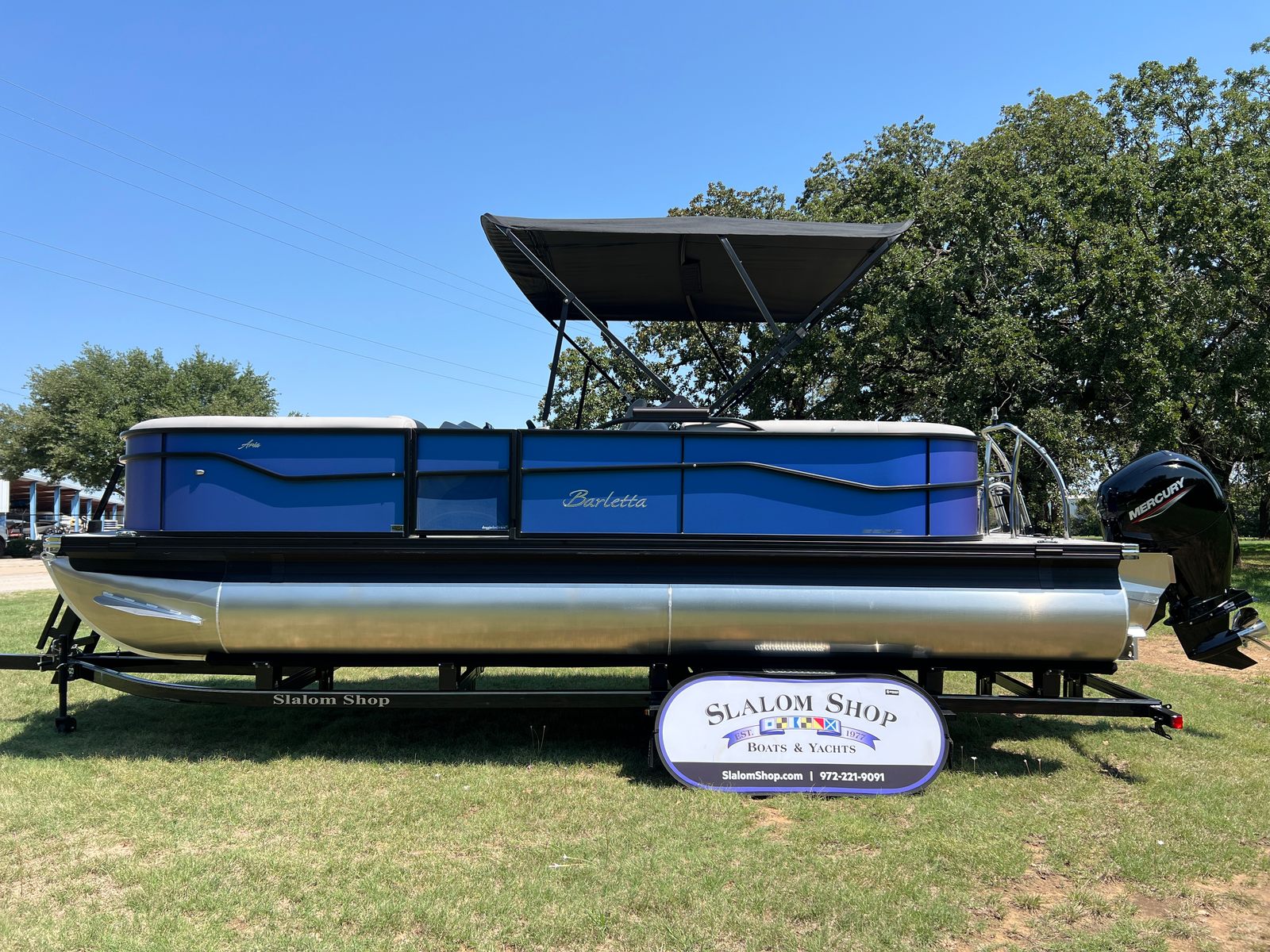 The 2026 Barletta Aria A22QC is a standout pontoon boat for sale, offering a winning combination of style, performance, and comfort. With its Pacific Matte Blue Railskin, Blackout Package, Tempest Gray furniture, Amore Gray flooring, triple toon stability, and powerful Mercury 150L Four Stroke engine, this boat is designed for those who demand the best in recreational boating. The in-floor midship storage and stainless steel flag pole with an American flag add practical and patriotic touches, making every outing special.If you’re searching for a Barletta boat for sale that delivers exceptional value, versatility, and enjoyment, the Aria A22QC is the perfect choice. Experience the thrill of the open water, the joy of social gatherings, and the peace of mind that comes with owning a top-quality pontoon boat. Contact your local dealer today to learn more about this exciting model and start your next adventure on the water!
