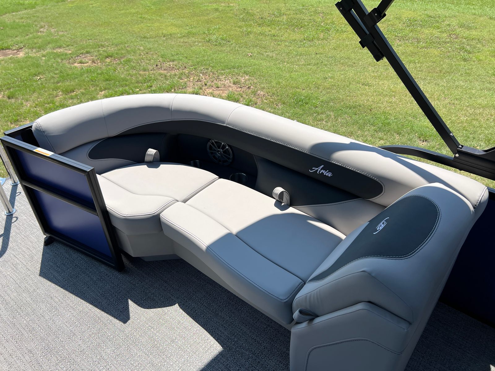 The Barletta Aria A22QC is packed with special features that elevate your boating experience. The Railskin Color Aria in Pacific Matte Blue gives the boat a sophisticated, modern look, while the Blackout Package Aria adds a bold, distinctive touch. Inside, the Tempest Gray furniture provides plush, comfortable seating for you and your guests, complemented by Amore Gray flooring that’s both stylish and easy to maintain. The triple toon package enhances stability and performance, ensuring a smooth and enjoyable ride.Practicality meets elegance with the in-floor midship storage, offering convenient space for stowing gear, water toys, and personal items. The stainless steel flag pole with an American flag adds a patriotic flair, making your boat stand out at every marina or dock. Every detail, from the premium materials to the thoughtful layout, is designed to maximize comfort, convenience, and enjoyment on the water.
