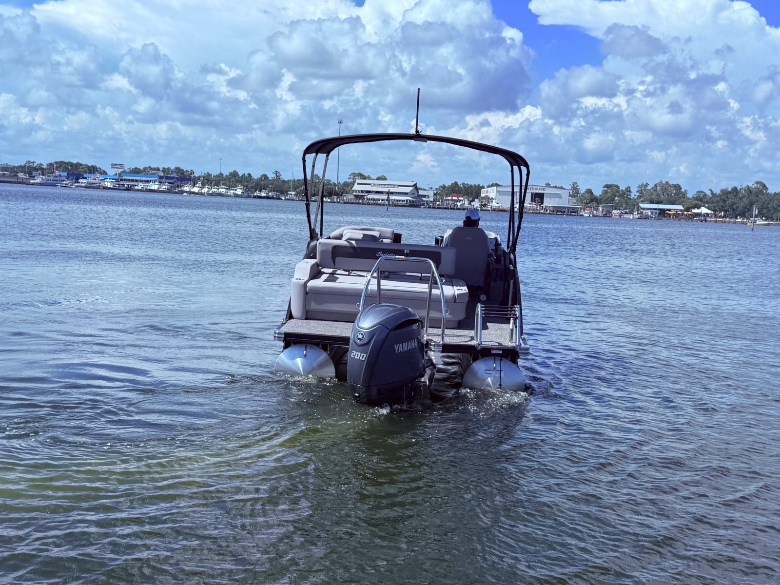The Barletta Aria A22UC-Platinum is designed with practicality in mind, making ownership as enjoyable as it is effortless. Its manageable 21-foot length allows for easy storage in most standard garages or boat slips, while the advanced rigging and pre-rigged Yamaha mechanical system simplify maintenance and operation. Docking is a breeze thanks to the responsive handling and stable platform provided by the triple toon package. The on-board charger keeps your batteries ready for action, so you never have to worry about running out of power during your adventures. Fuel efficiency is enhanced by the modern engine design and stainless steel prop, helping you make the most of every outing without breaking the bank.