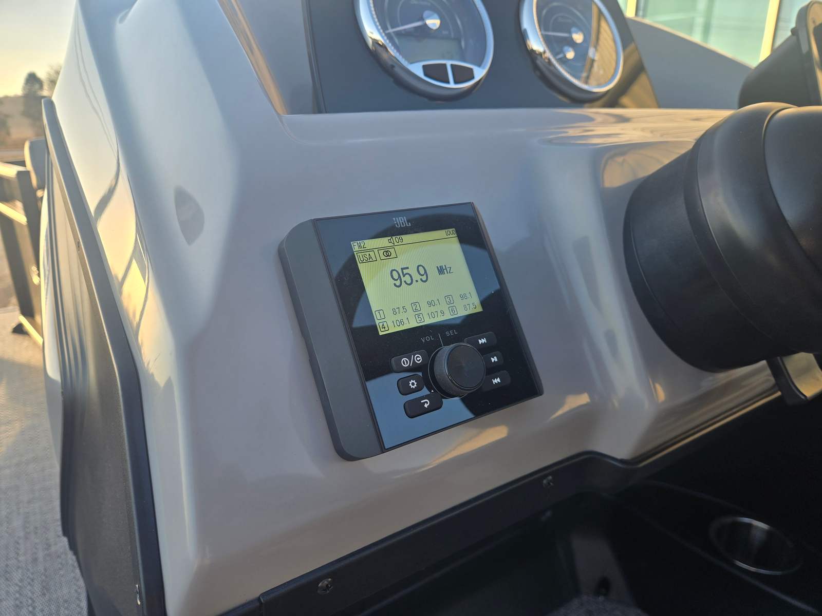 Powering this exceptional pontoon is a single Mercury (M) 200L FourStroke engine, delivering a robust 200 horsepower for smooth acceleration and reliable cruising. The Mercury - Mechanical with Power Assist steering system ensures effortless handling, making it easy to navigate tight marinas or glide across open water. The rig engine is equipped with a stainless steel prop, maximizing efficiency and durability while providing the responsive performance you expect from a premium Barletta boat for sale. Whether you’re towing water toys, exploring new coves, or simply enjoying a sunset cruise, the Aria A22UC-Platinum offers the power and agility to make every trip memorable.