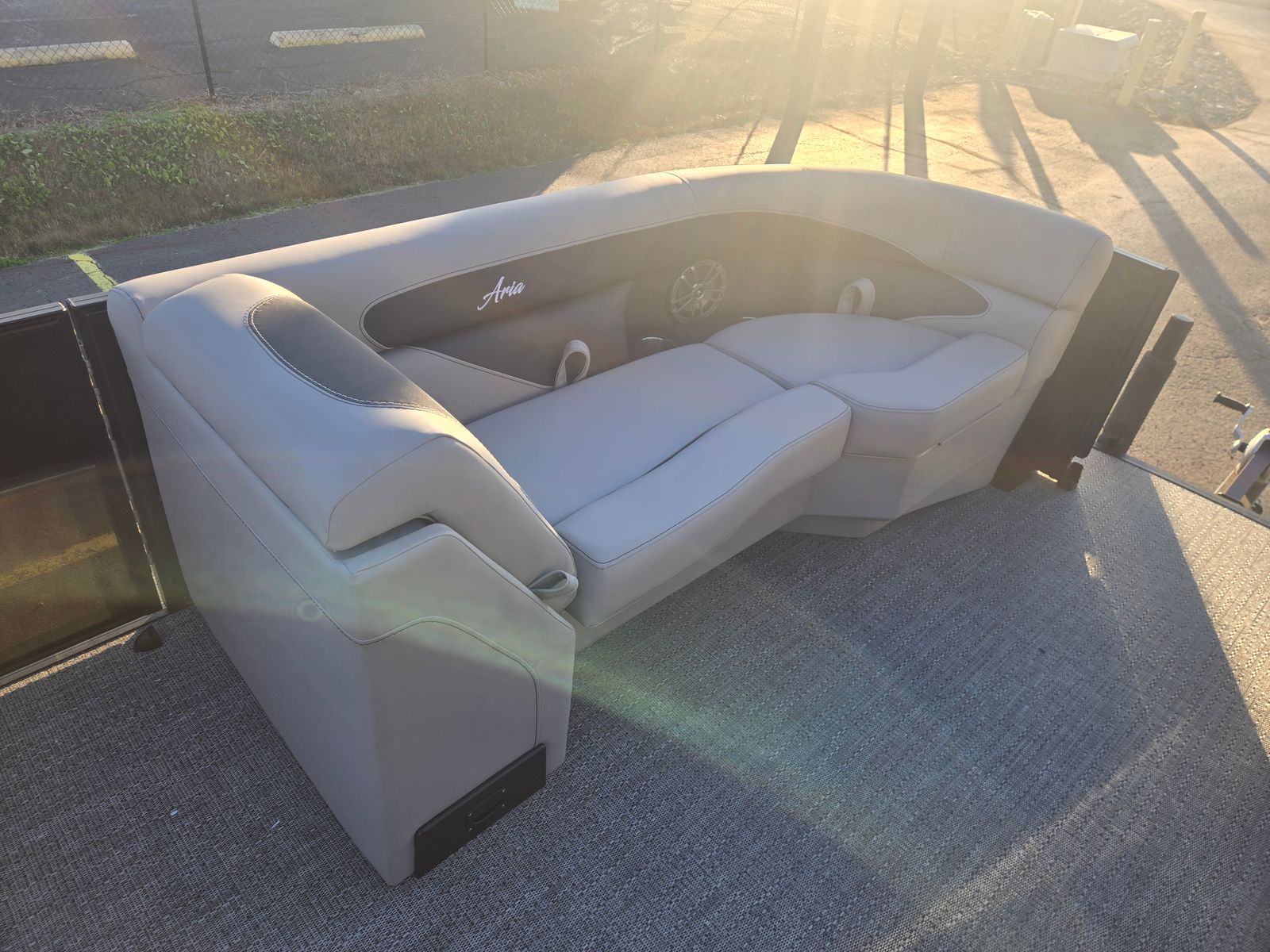 Owning the Barletta Aria A22UC-Platinum means embracing a lifestyle of relaxation, excitement, and connection. The spacious layout is perfect for socializing, with plenty of room for family and friends to gather, share meals, or simply soak up the sun. The luxurious Tempest Gray furniture invites you to unwind in style, while the advanced flooring ensures comfort whether you’re barefoot or in sandals. With the Triple Toon Package Aria, you’ll enjoy a stable, secure ride that keeps everyone comfortable, even when the water gets lively.The powerful Mercury engine provides the speed and reliability you need for a variety of activities, from leisurely cruises to thrilling water sports. With easy-to-use controls and responsive steering, even novice boaters will feel confident behind the wheel. The onboard battery charger means less time worrying about power and more time enjoying the water, while the stainless steel flag pole lets you showcase your pride wherever you go.