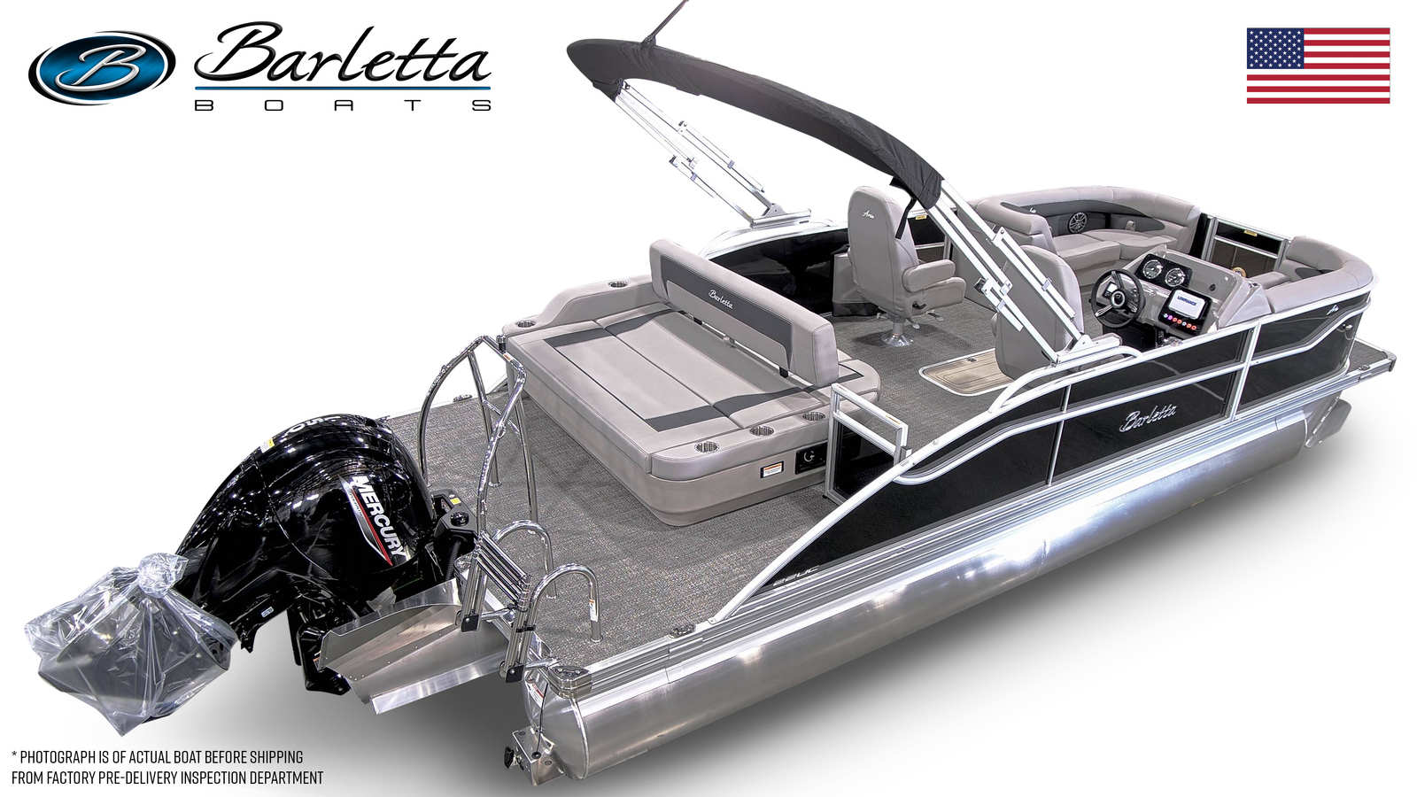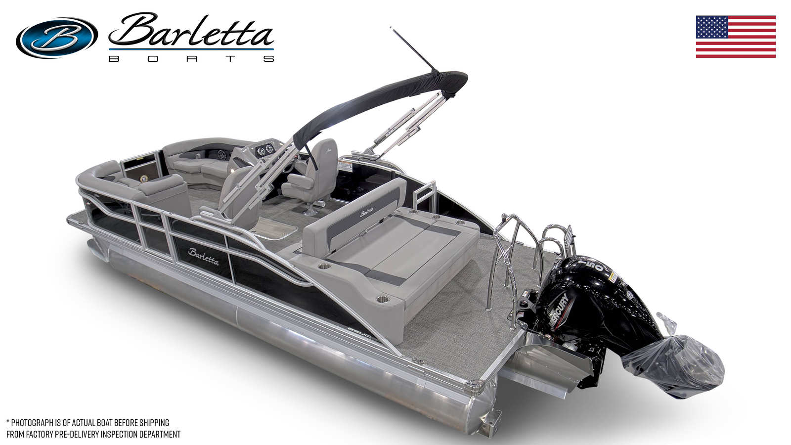 This Barletta boat for sale is loaded with premium features designed to maximize comfort, convenience, and fun. The Mercury pre-rig mechanical system ensures seamless integration and optimal engine performance, while the in-floor midship storage provides ample space for all your gear, water toys, and essentials. The Eagle 5 GPS offers advanced navigation, helping you explore new destinations with confidence and ease.A stainless steel flag pole with an American flag adds a patriotic touch, making your pontoon stand out at any marina or dock. The thoughtfully designed furniture in Tempest Gray offers plush seating and ergonomic support, ensuring everyone onboard can relax in style. The Amore Gray flooring is not only visually appealing but also easy to clean and maintain, making it ideal for active days on the water. With the Triple Toon Package Aria, you’ll enjoy enhanced stability and a smoother ride, even when waters get choppy.
