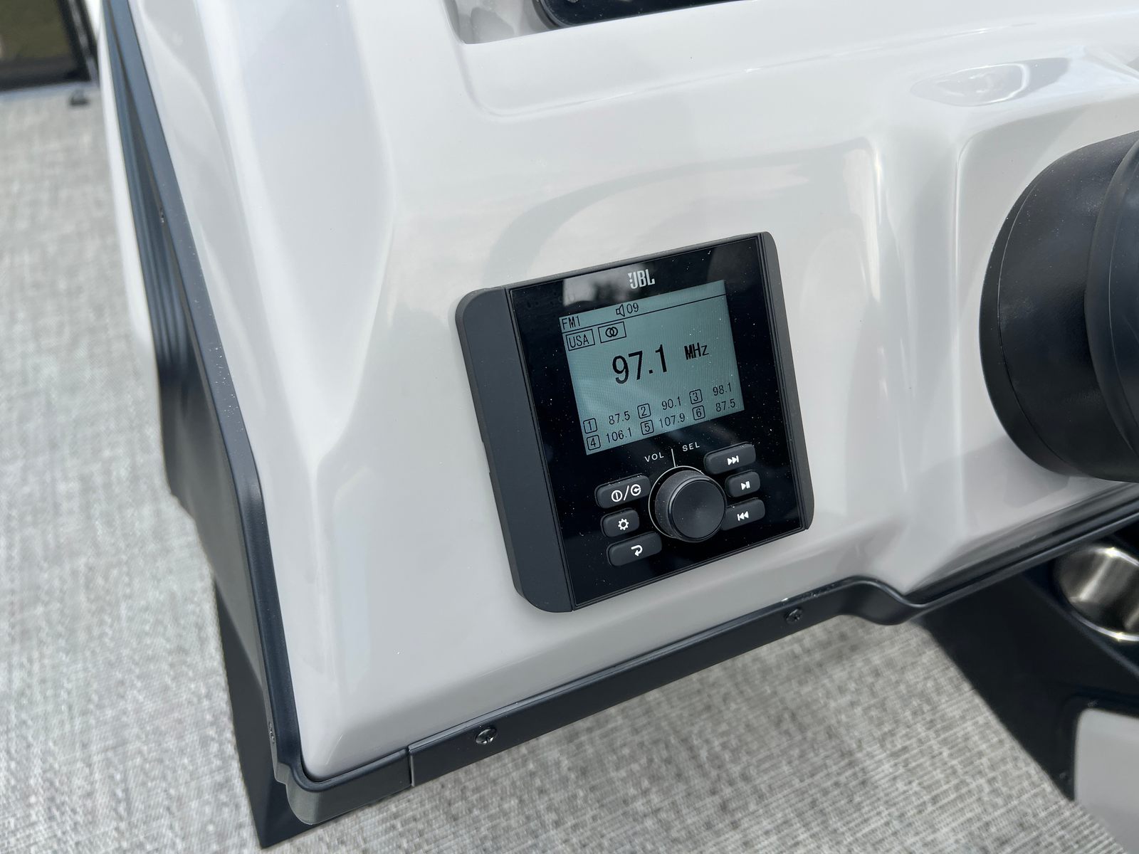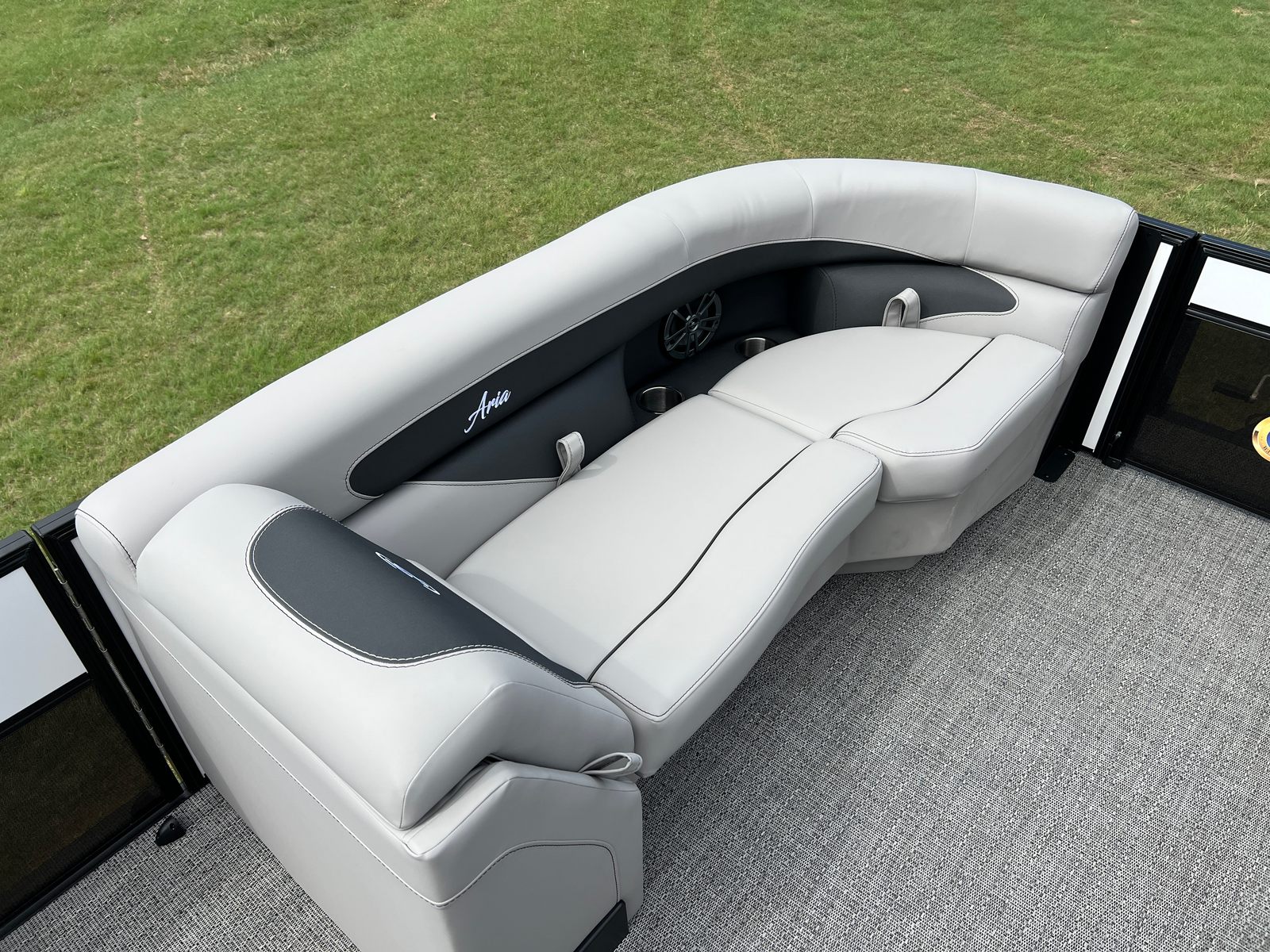 The Barletta Aria A22UC is loaded with premium features designed to maximize comfort, convenience, and style. The Railskin Color Aria in Winter White and the Black Diamond accent create a visually striking exterior, while the Blackout Package Aria adds a touch of modern sophistication. Inside, the Tempest Gray furniture offers plush seating and ergonomic support, perfect for relaxing or socializing with guests. The Amore Gray flooring is both stylish and practical, providing a durable surface that stands up to the rigors of boating life.The Triple Toon Package Aria delivers enhanced stability and buoyancy, making this pontoon ideal for larger groups and active days on the water. The Mercury (M) 150L Four Stroke engine is pre-rigged for mechanical operation, ensuring seamless integration and reliable performance. Rigging with a stainless steel prop adds efficiency and longevity, while the exterior stainless steel flag pole with an American flag showcases your pride and adds a patriotic touch to your boating adventures.