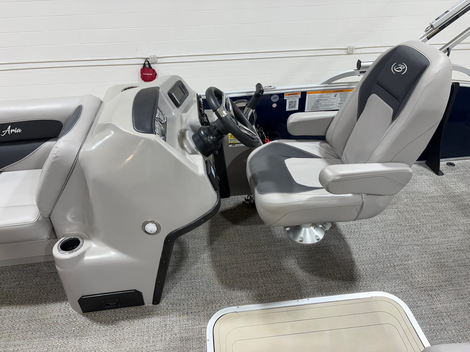 The 2025 Barletta Aria A22UC is a 21-foot pontoon boat that captures attention with its sleek lines and modern design. As a used pontoon boat, it offers the unique advantage of premium features at a more accessible price point, making it an attractive option for boating enthusiasts seeking quality and value. The Aria A22UC’s generous length provides ample space for passengers to move about comfortably, ensuring that every outing is both enjoyable and memorable. The combination of the Triple Toon Package and the striking Blue Sapphire Railskin creates a visual statement that is sure to turn heads at any marina or lake.