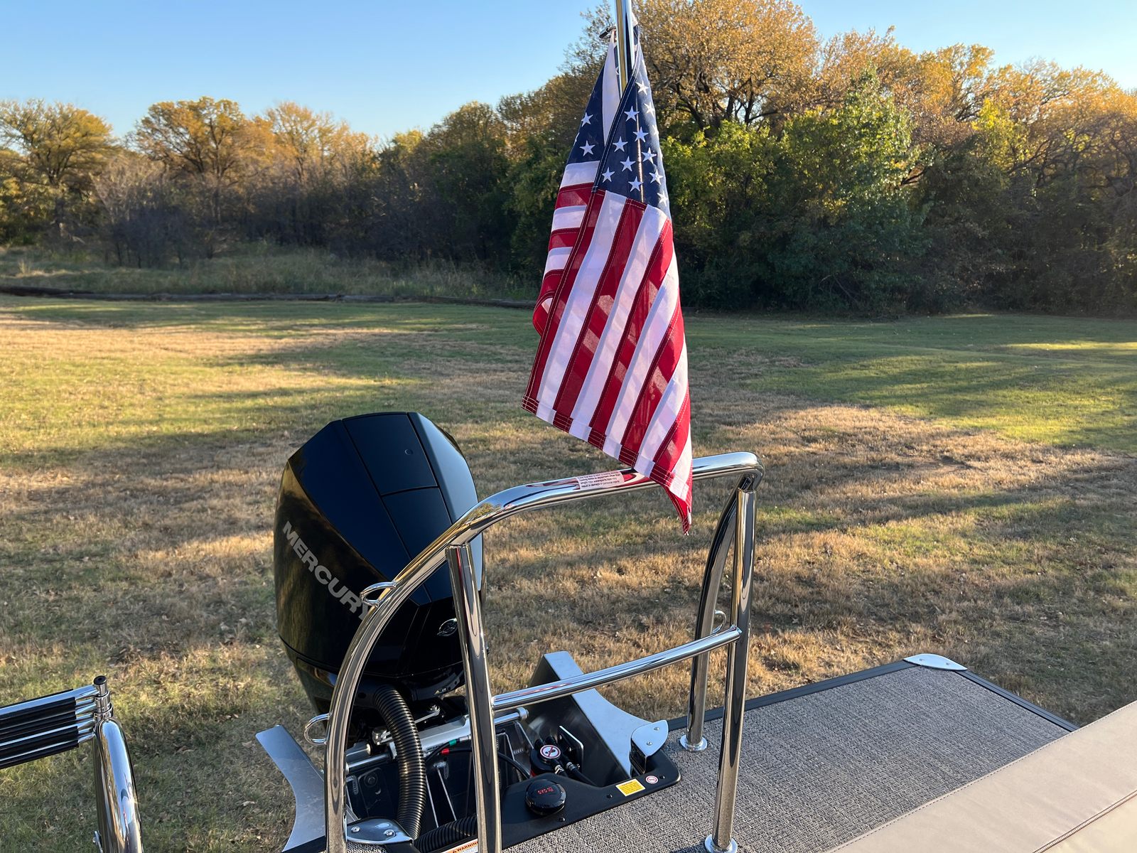 Step aboard the Aria A24UC and discover a world of premium features designed for comfort and convenience. The Tempest Gray furniture offers plush seating and a modern aesthetic, while the Amore Gray flooring provides a stylish and durable foundation for all your on-board activities. The in-floor midship storage is perfect for stowing away gear, water toys, or picnic essentials, keeping the deck clutter-free and organized. The stainless steel flag pole with an American flag adds a patriotic touch, making this pontoon boat a standout wherever you go.The Railskin Color Aria in Red Garnet, paired with the Black Diamond accent and Blackout Package Aria, creates a bold and sophisticated look that is sure to impress. Every detail, from the premium upholstery to the thoughtful storage solutions, is designed to enhance your boating experience and provide lasting value.