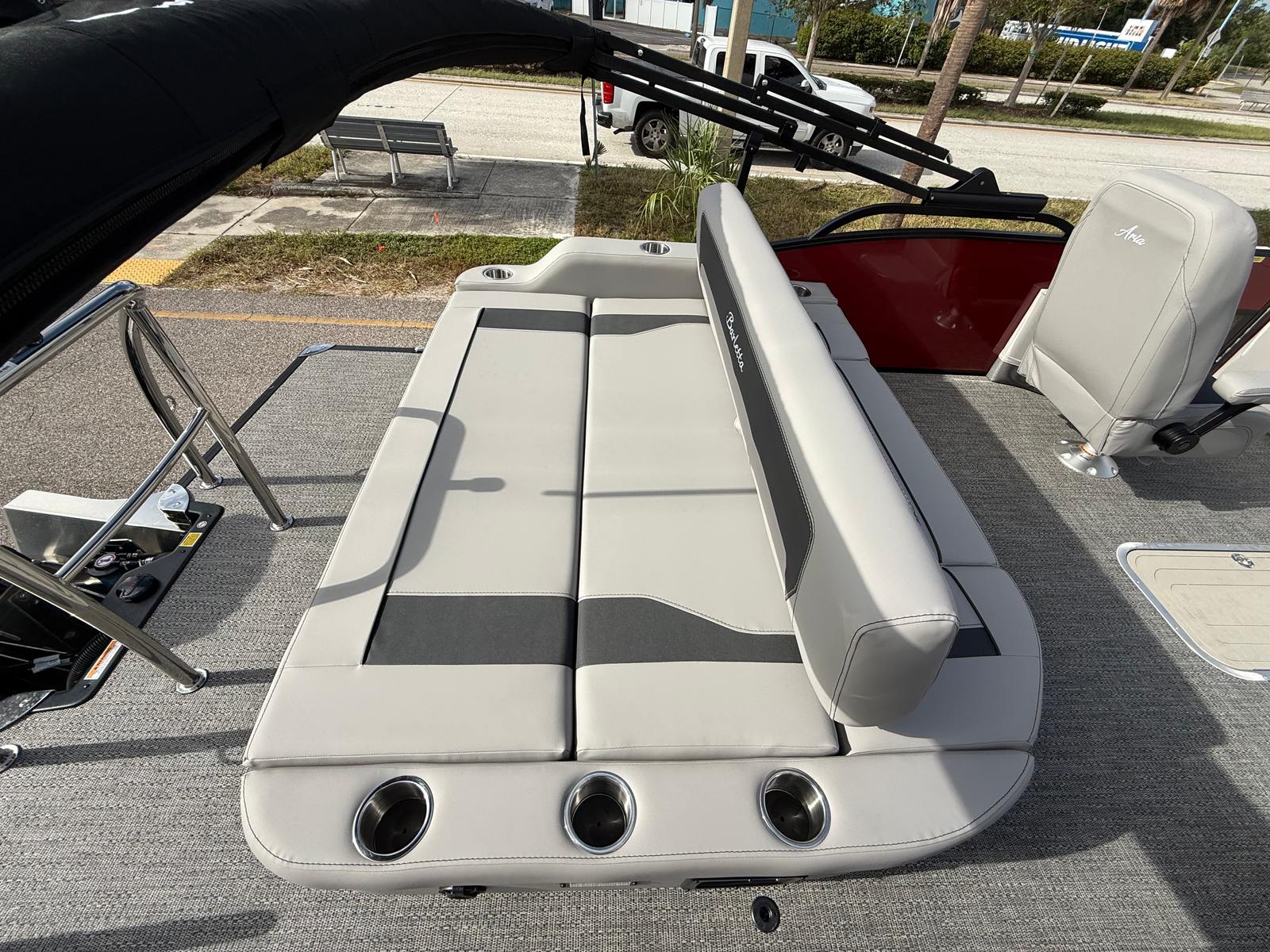 In summary, the 2026 Barletta Aria A24UC pontoon boat for sale is a remarkable blend of performance, comfort, and style. With its powerful Yamaha engine, striking Red Garnet and Gray Moonstone railskin colors, Blackout Package Aria, Tempest Gray furniture, Amore Gray flooring, Coastal Edition Aria, and Triple Toon Package Aria, this boat is designed to impress and built to last. Whether you’re searching for a Barletta boat for sale to elevate your family outings, fishing trips, or luxury escapes, the Aria A24UC is a top-tier choice. Don’t miss the opportunity to make this exceptional pontoon boat your own—contact your local dealer today to learn more and start your next adventure on the water.