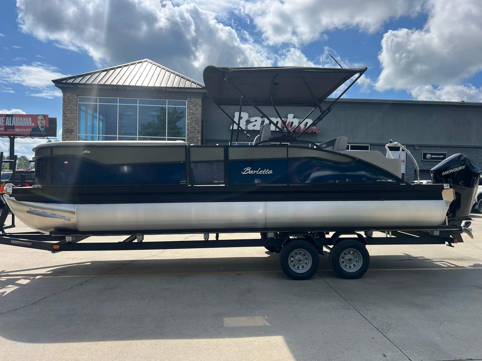 The 2026 Barletta Aria A24UC is a brand-new pontoon boat that measures an impressive 23.83 feet in length, offering ample space for relaxation and entertainment. With its sleek Blue Sapphire Railskin color and the striking Aria Blackout Package, this pontoon stands out on the water with a modern and sophisticated look. The Tempest Gray furniture and Alpine Gray flooring create a refined and inviting atmosphere, making every outing feel like a special occasion. As a new model, this Barletta pontoon boat for sale is in pristine condition, ready for you to make unforgettable memories from day one.