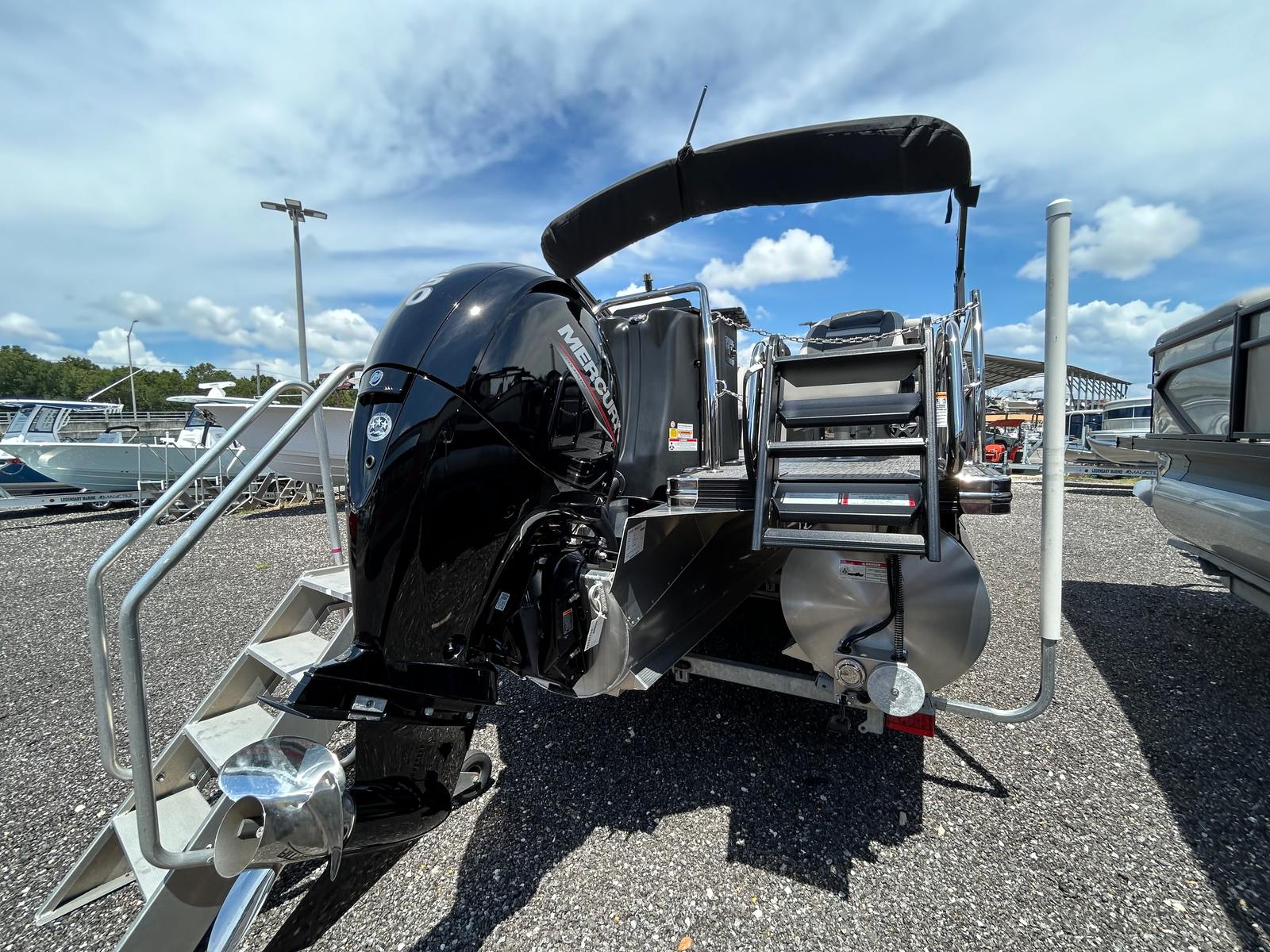 Powering the Barletta Cabrio C22CC is a Mercury 150L 4S engine, delivering an impressive 150 horsepower. This single-engine setup ensures smooth, reliable performance, making it easy to navigate lakes, rivers, and coastal waters with confidence. The Mercury engine is renowned for its efficiency and quiet operation, allowing you to enjoy conversations and the sounds of nature without intrusive noise. Whether you are cruising at a leisurely pace or picking up speed for watersports, the Cabrio C22CC offers responsive handling and a stable ride, thanks in part to its Triple Toon Package with midship storage. This advanced pontoon configuration enhances buoyancy and stability, providing a smooth and secure experience even when the water gets choppy.