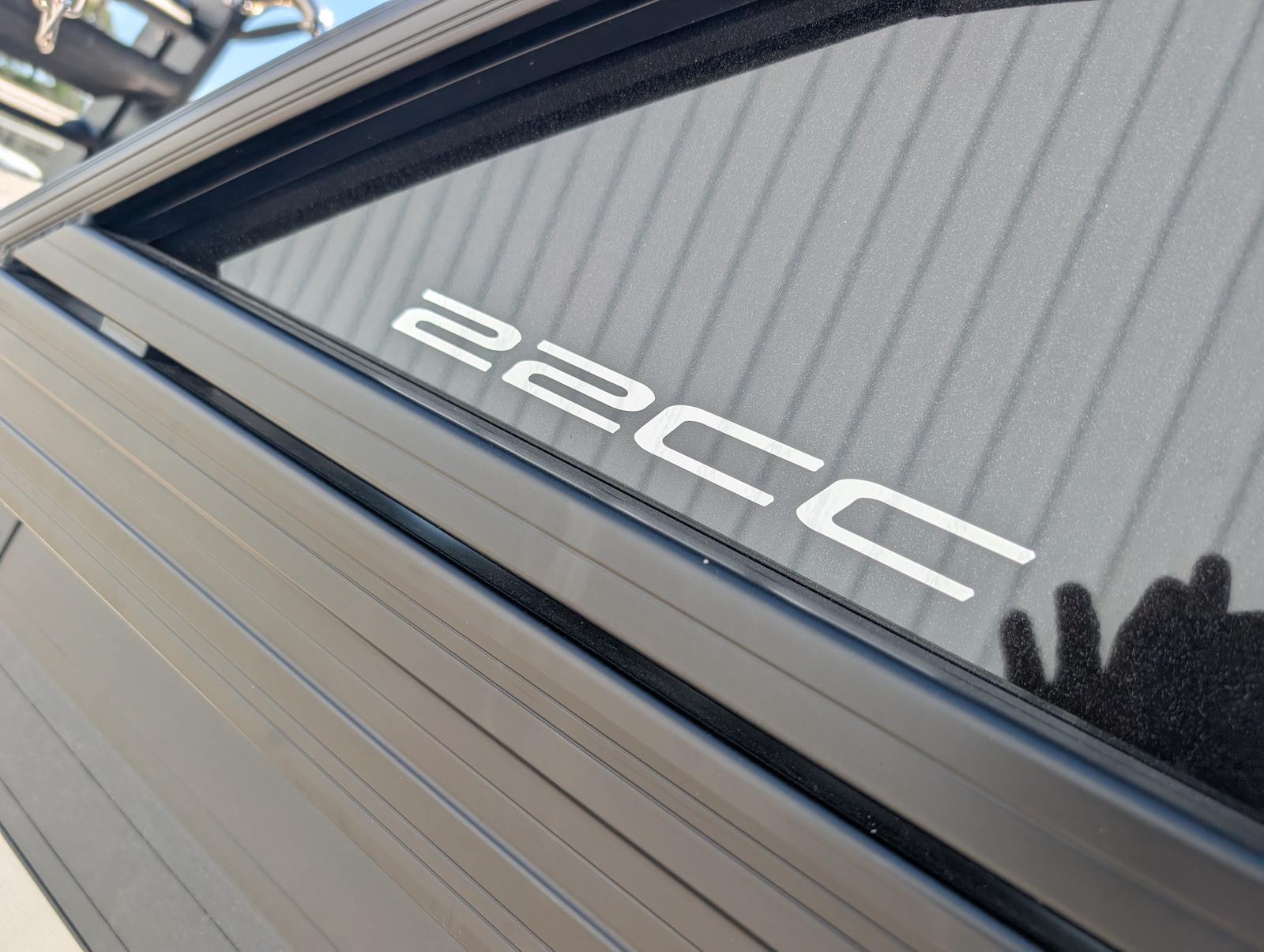 The 2025 Barletta Cabrio C22CC is packed with premium features that set it apart from other pontoon boats for sale. The Amore Gray flooring offers a modern and sophisticated look while providing durability and easy maintenance. The interior RGB Lighting Package Cabrio creates a vibrant and customizable atmosphere, perfect for evening gatherings or late-night cruises. Entertain guests around the stylish table, pedestal, and base, complete with Yeti-ready cupholders to keep your favorite beverages secure and within reach.The Triple Toon Package with midship storage enhances stability and buoyancy, ensuring a smooth and comfortable ride even when the boat is fully loaded. The helm is equipped with a Simrad 7 G07 XSR chartplotter and multifunction display, giving you advanced navigation and control at your fingertips. The exterior features a Metal Jacket Protectant, offering added durability and protection against the elements, while the Blackout Package Cabrio railskin adds a sleek, modern touch to the boat’s profile.Inside, the Marquesan Gray furniture with charcoal accents provides plush seating and a refined aesthetic, making every moment on board feel like a luxury experience. Every detail, from the upholstery to the layout, is designed with comfort and style in mind.