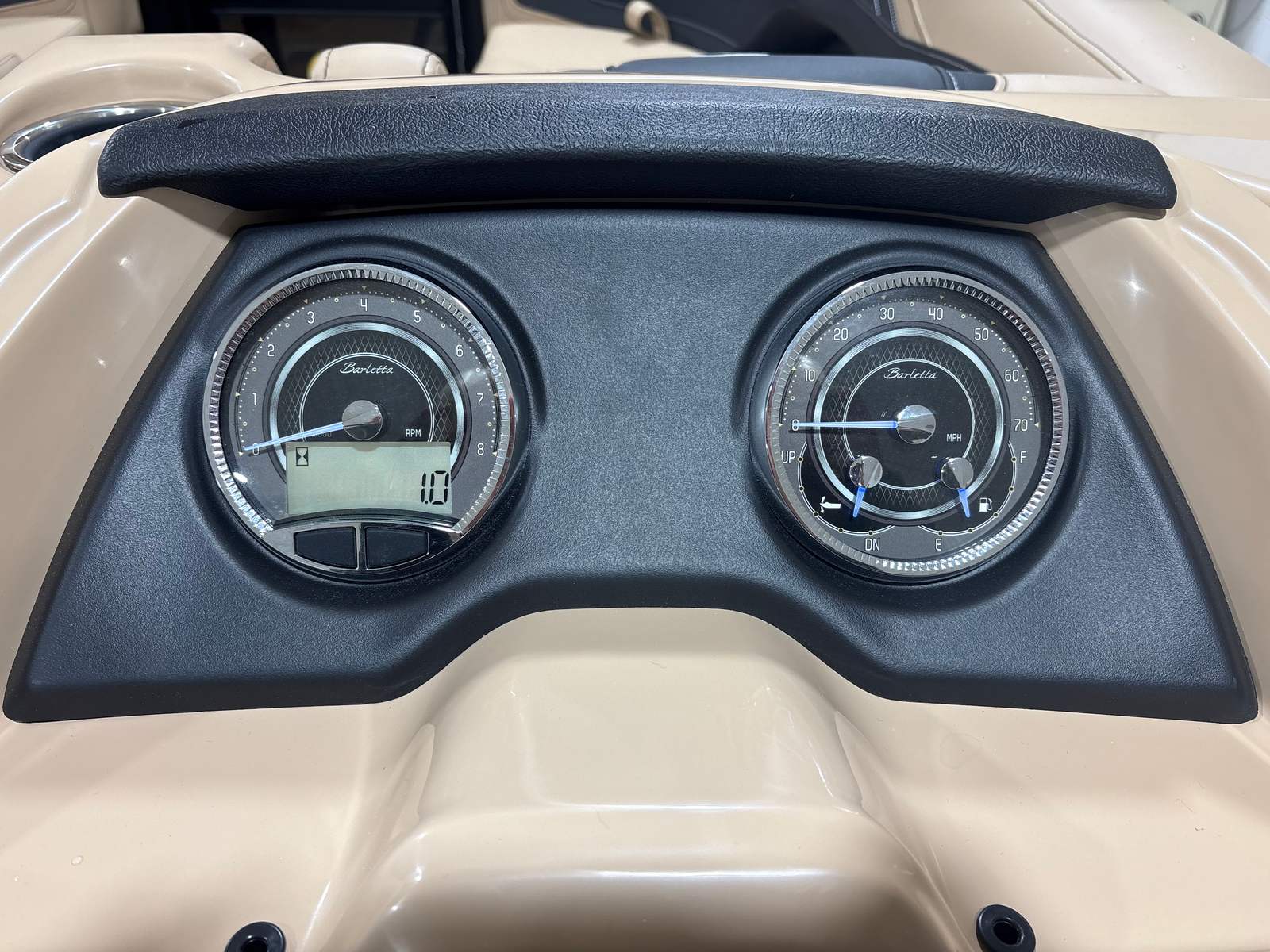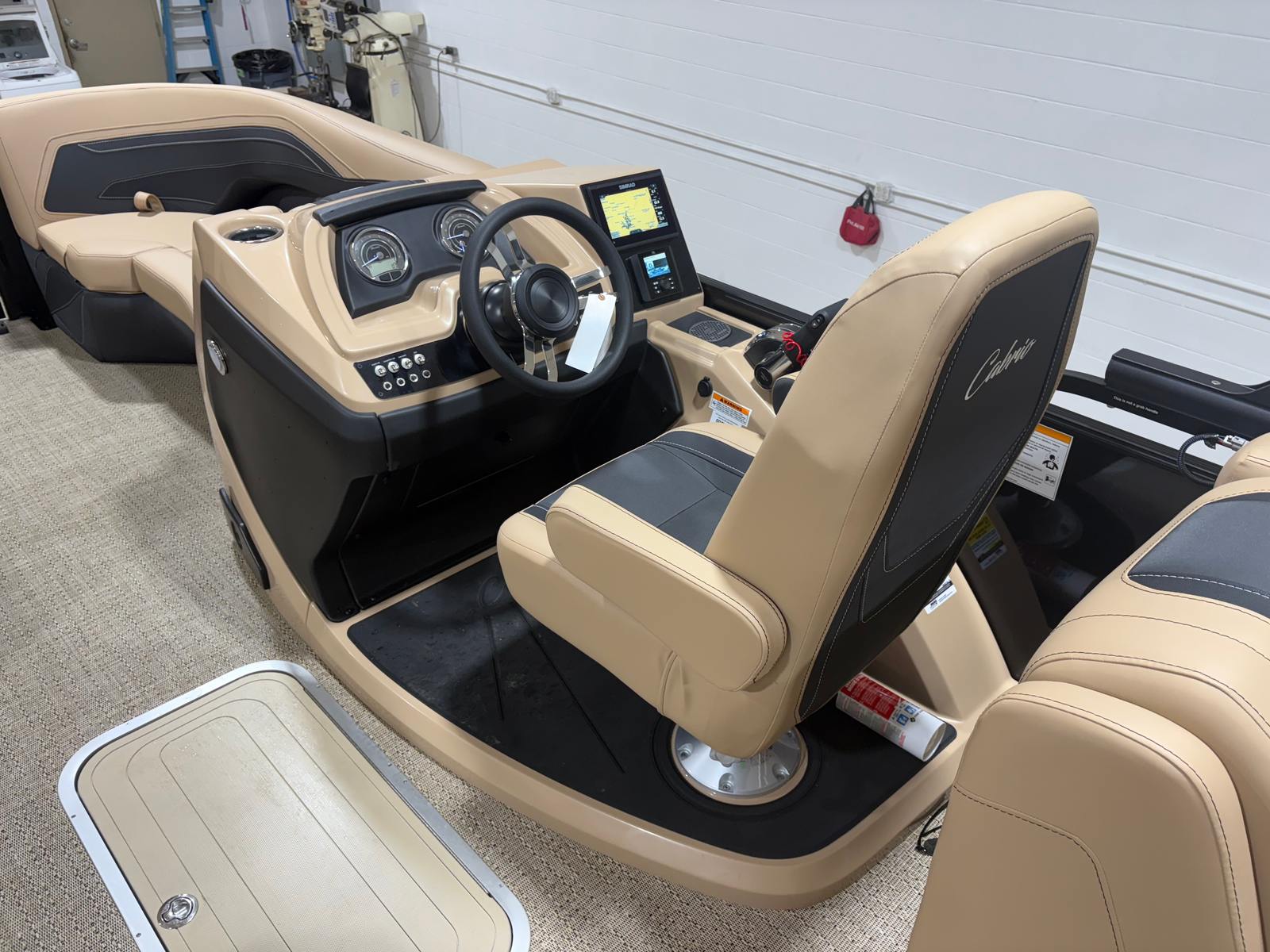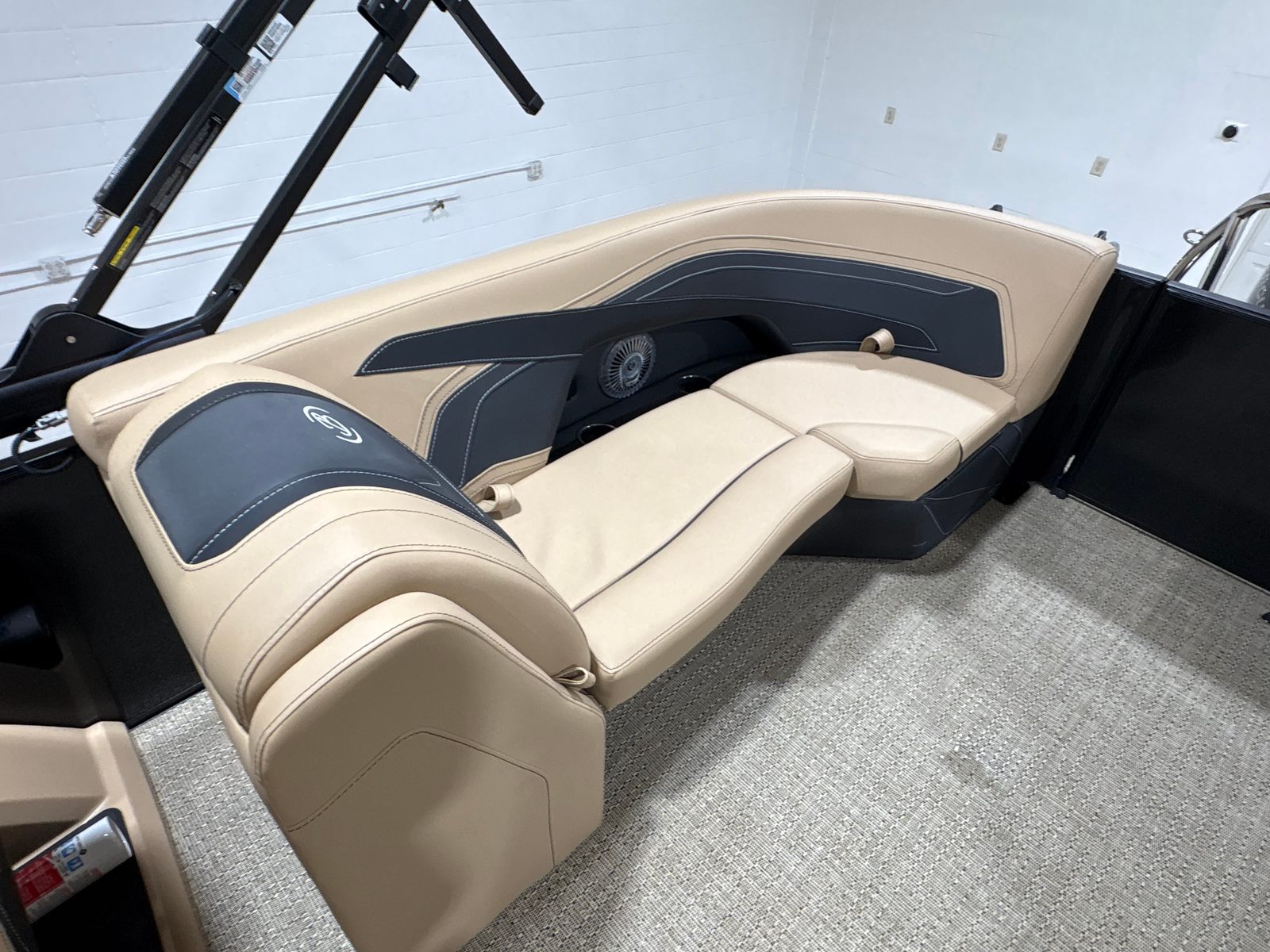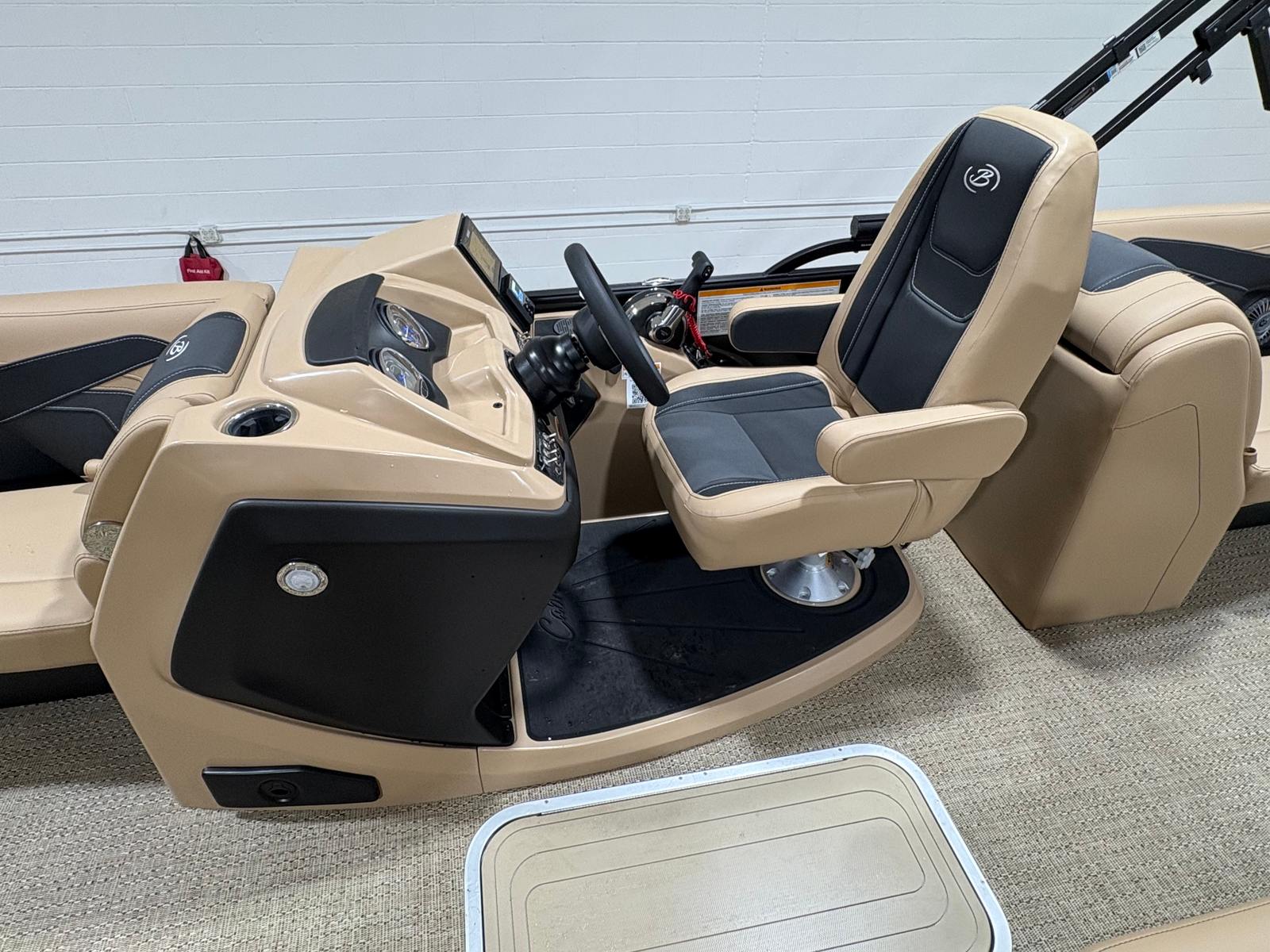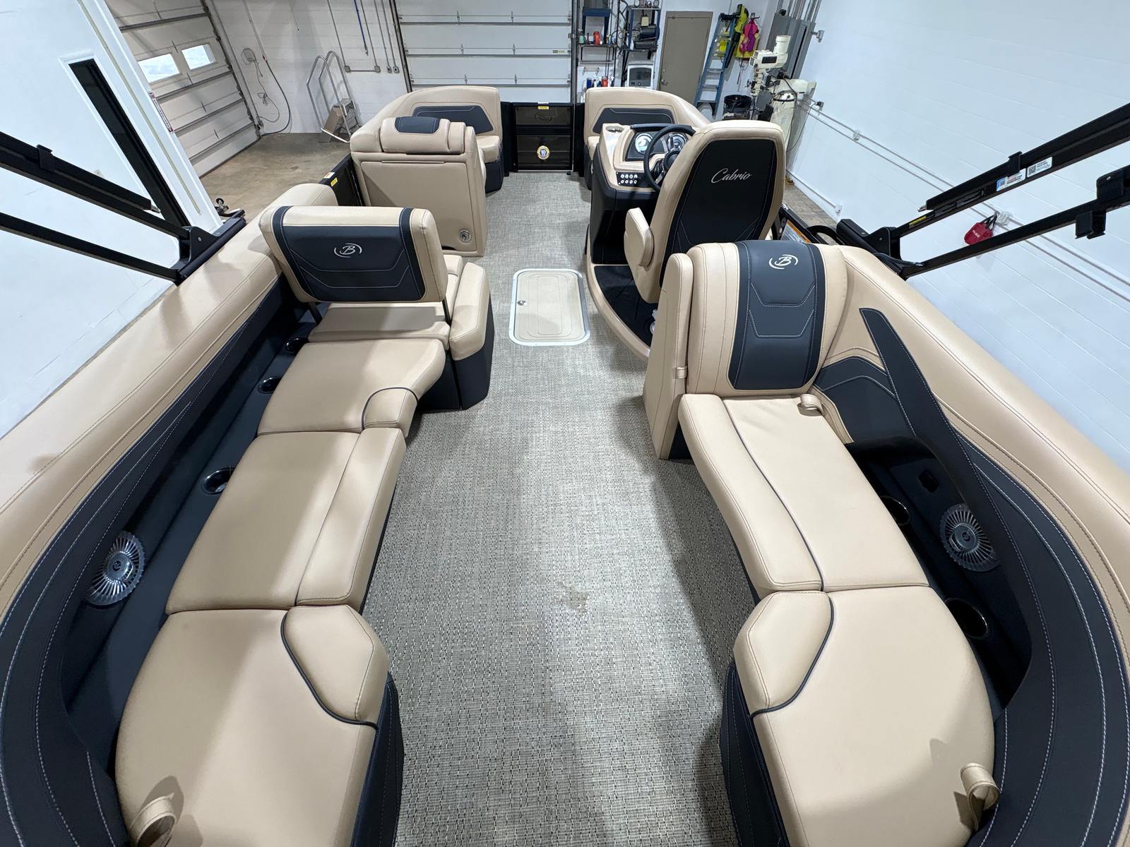The Barletta Cabrio C22Q is loaded with features that elevate your boating experience. The Black Diamond Railskin color and Blackout Package Cabrio create a bold, contemporary exterior that is both stylish and durable. Step aboard to discover the Carmella Tan with Onyx furniture, offering plush comfort and a sophisticated look. The Amore Tan flooring is not only visually appealing but also practical, providing a soft, non-slip surface underfoot.One of the standout features of this pontoon is the Triple Toon Package with midship storage, exclusive to the Cabrio line. This configuration enhances stability and buoyancy, while the midship storage compartment offers convenient space for stowing gear, water toys, or picnic essentials. The stainless steel flag pole with an American flag adds a patriotic touch, perfect for holiday weekends or special occasions on the water.For those who love to set the mood, the interior RGB lighting package allows you to customize the ambiance with vibrant colors, making evening cruises truly magical. Every detail, from the stainless steel accents to the thoughtfully designed seating, reflects Barletta’s commitment to quality and comfort.