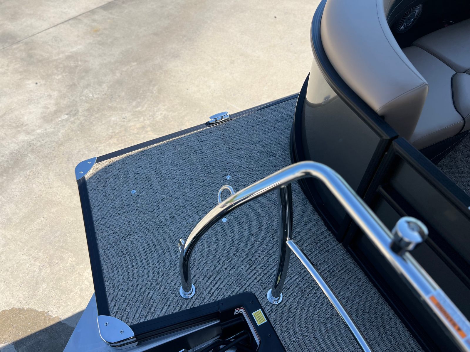 The Barletta Cabrio C22Q is loaded with premium features that set it apart in the world of pontoon boats. The striking Gray Moonstone Railskin color, complemented by the Blackout Package Cabrio, gives the exterior a sophisticated and modern appearance. Inside, the Carmella Tan furniture with Onyx accents creates a warm and inviting atmosphere, while the Amore Tan flooring adds a touch of elegance and comfort underfoot.The Triple Toon Package with midship storage provides enhanced stability, buoyancy, and extra storage space for all your gear, making it ideal for longer excursions or group outings. The onboard battery charger with two batteries ensures you have reliable power for all your electronic needs, while the stainless steel flag pole with an American flag adds a patriotic flair to your boating experience. Every detail, from the rigged engine with a stainless steel prop to the thoughtfully designed seating and storage solutions, is crafted to enhance your time on the water.