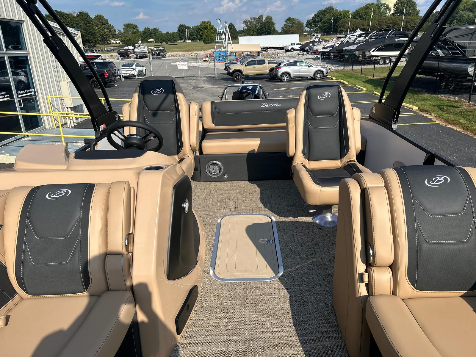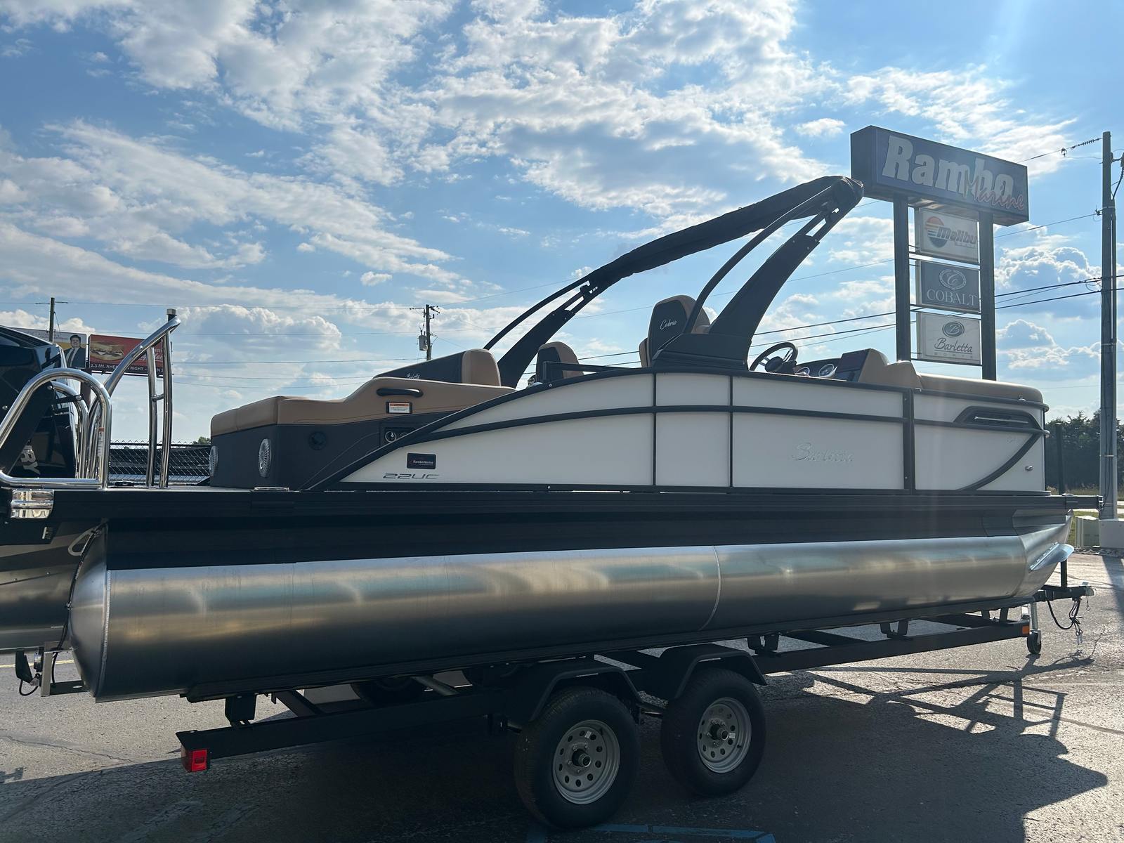 The 2026 Barletta Cabrio C22UC is loaded with premium features that elevate your boating experience. The Blackout Package Cabrio railskin adds a bold, modern touch to the exterior, while the Amore Tan flooring provides a warm and inviting atmosphere underfoot. The Sport Bimini, installed in place of the standard bimini, offers superior shade and protection, allowing you to enjoy long days on the water in comfort.For those who appreciate ambiance, the Interior RGB Lighting Package Cabrio lets you customize the mood with vibrant, adjustable lighting, while the exterior white underdeck and underwater lighting create a striking presence after dark. The onboard battery charger with two batteries ensures you have reliable power for all your adventures, while the triple toon package with midship storage maximizes stability and provides ample space for gear and essentials.A stainless steel flag pole with an American flag adds a patriotic flair, making this pontoon boat a true standout wherever you go. Every detail, from the rigged engine with stainless steel prop to the thoughtfully designed storage solutions, reflects Barletta’s dedication to quality and innovation.