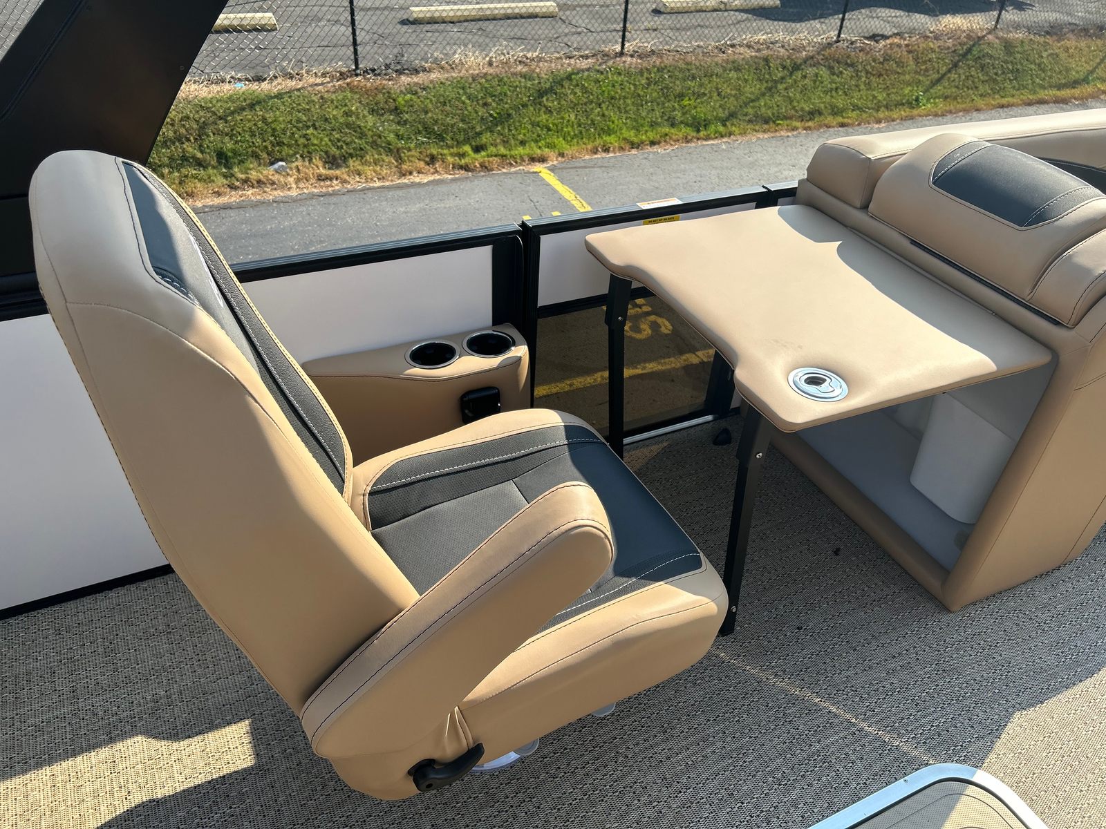 This Barletta pontoon boat for sale is as practical as it is stylish. The midship storage in the triple toon package offers generous space for water toys, safety gear, and personal belongings, keeping the deck clutter-free and organized. The onboard battery charger with two batteries provides peace of mind, ensuring your electronics and lighting systems are always ready for action.Docking and maneuvering are made easier by the responsive handling and thoughtfully designed controls, while the stainless steel prop enhances both performance and durability. The Amore Tan flooring is not only attractive but also easy to clean, making maintenance a breeze after a day of fun. The Cabrio C22UC’s efficient engine helps you make the most of every gallon of fuel, so you can spend more time on the water and less time at the pump.