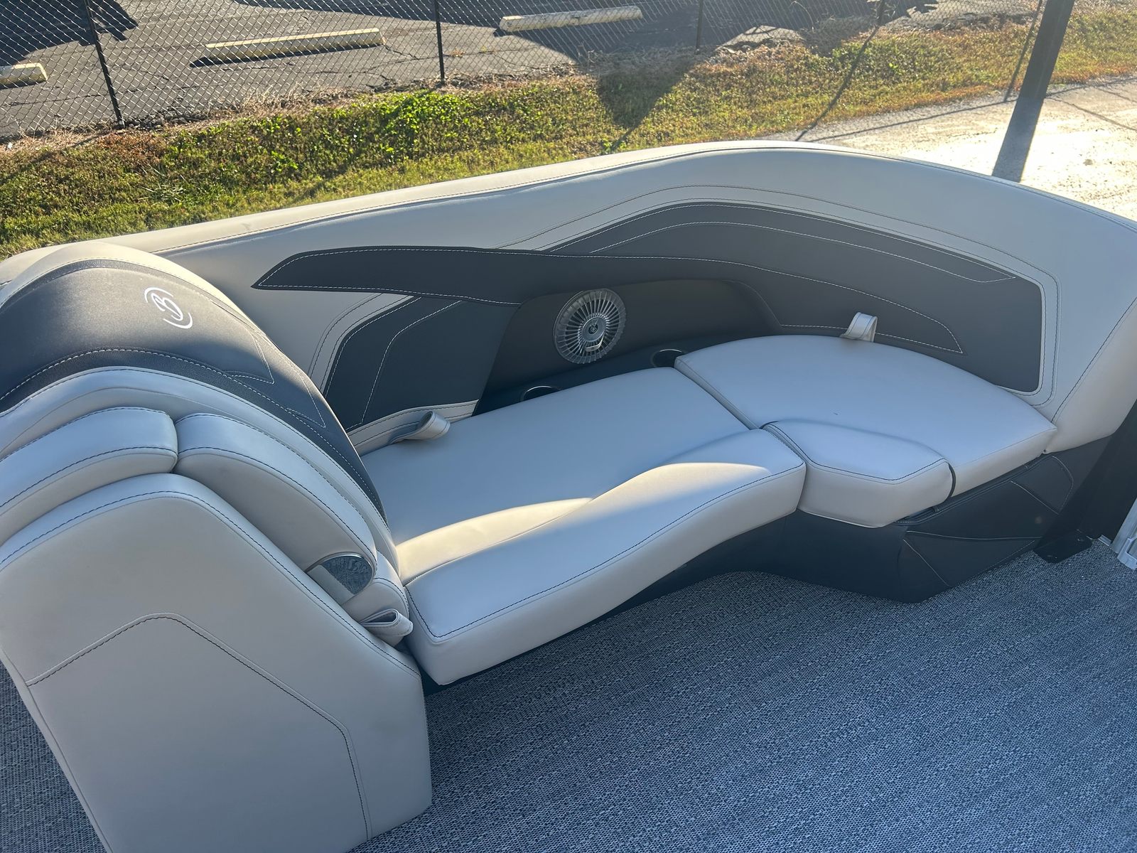 Owning the Barletta Cabrio C22UC means embracing a lifestyle of relaxation, excitement, and social connection. The spacious layout and premium seating invite you to unwind with family and friends, while the advanced features ensure that every outing is comfortable and convenient. The triple toon design not only enhances performance but also provides a stable platform for swimming, sunbathing, or hosting gatherings on the water.The customizable interior lighting sets the mood for any occasion, from lively celebrations to tranquil sunset cruises. With ample storage and thoughtful design touches throughout, you can bring along everything you need for a full day of fun without sacrificing comfort or style.