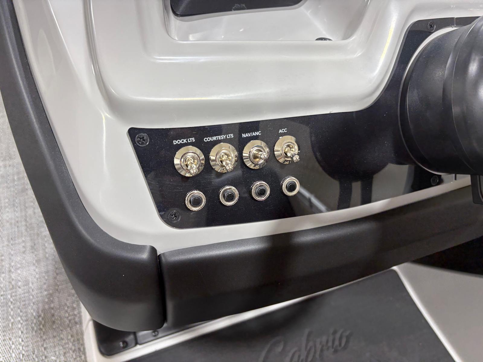Powering this exceptional pontoon is a Mercury (M) 200L FourStroke engine, delivering a robust 200 horsepower. With just 1 engine hour, you are essentially getting a brand-new powerplant ready to provide years of reliable performance. The Mercury FourStroke is renowned for its smooth acceleration, quiet operation, and impressive fuel efficiency, making it ideal for both leisurely cruises and spirited rides across the water. The pre-rigged Mercury mechanical system with power assist ensures effortless handling and precise control, while the stainless steel prop enhances durability and performance. Whether you are gliding across calm lakes or navigating busy waterways, the Cabrio C22UC offers a responsive and exhilarating ride.