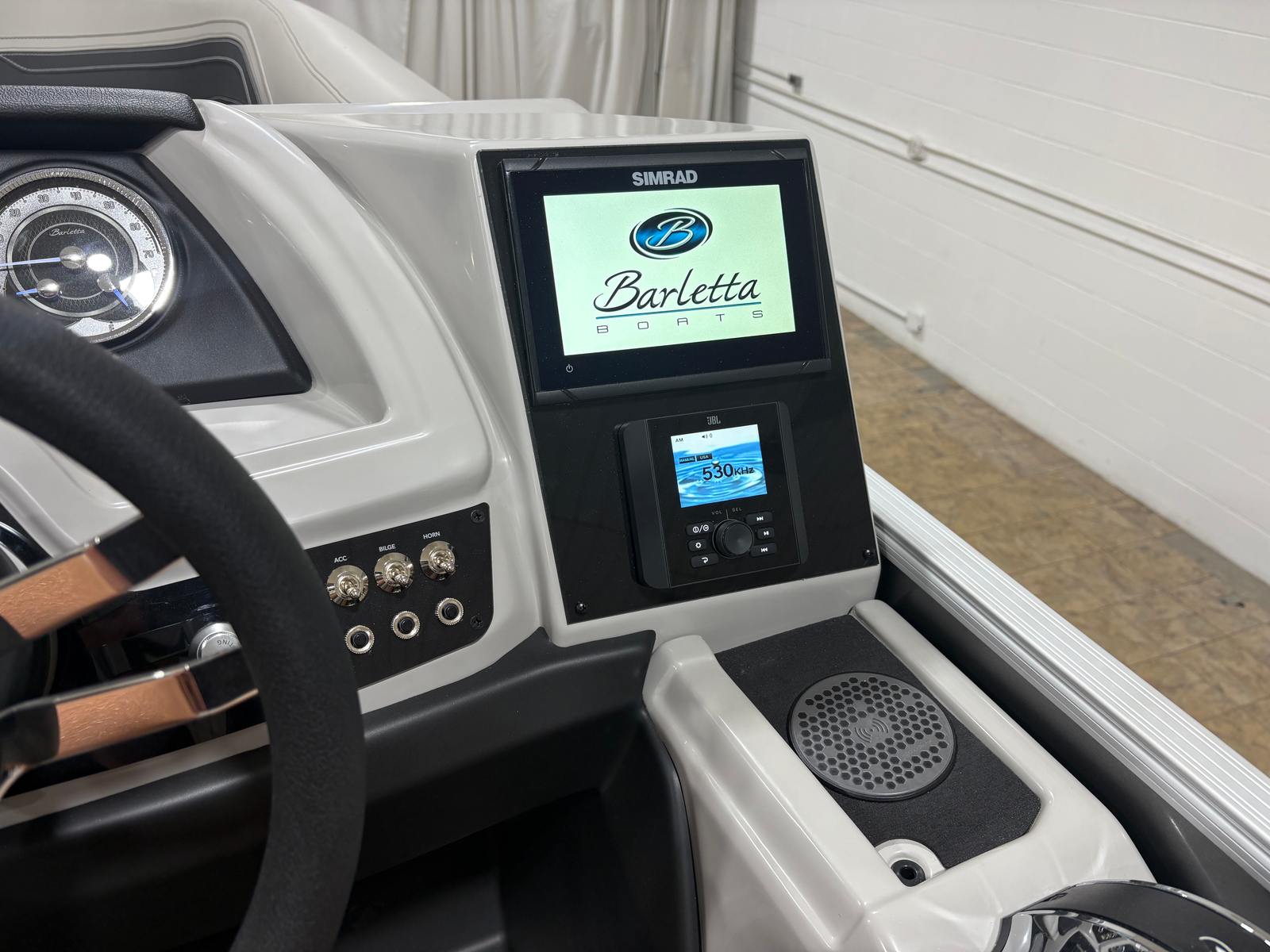 This Barletta pontoon boat is designed with convenience and ease of ownership in mind. The midship storage included in the Triple Toon Package provides ample space for all your gear, from water toys to picnic supplies, ensuring your deck stays clutter-free and organized. The power assist steering and mechanical rigging make docking and maneuvering a breeze, even for less experienced boaters.Fuel efficiency is another standout feature, thanks to the advanced Mercury FourStroke engine. Spend more time enjoying the water and less time worrying about refueling. The durable flooring and high-quality upholstery are built to withstand the elements, making maintenance simple and stress-free.