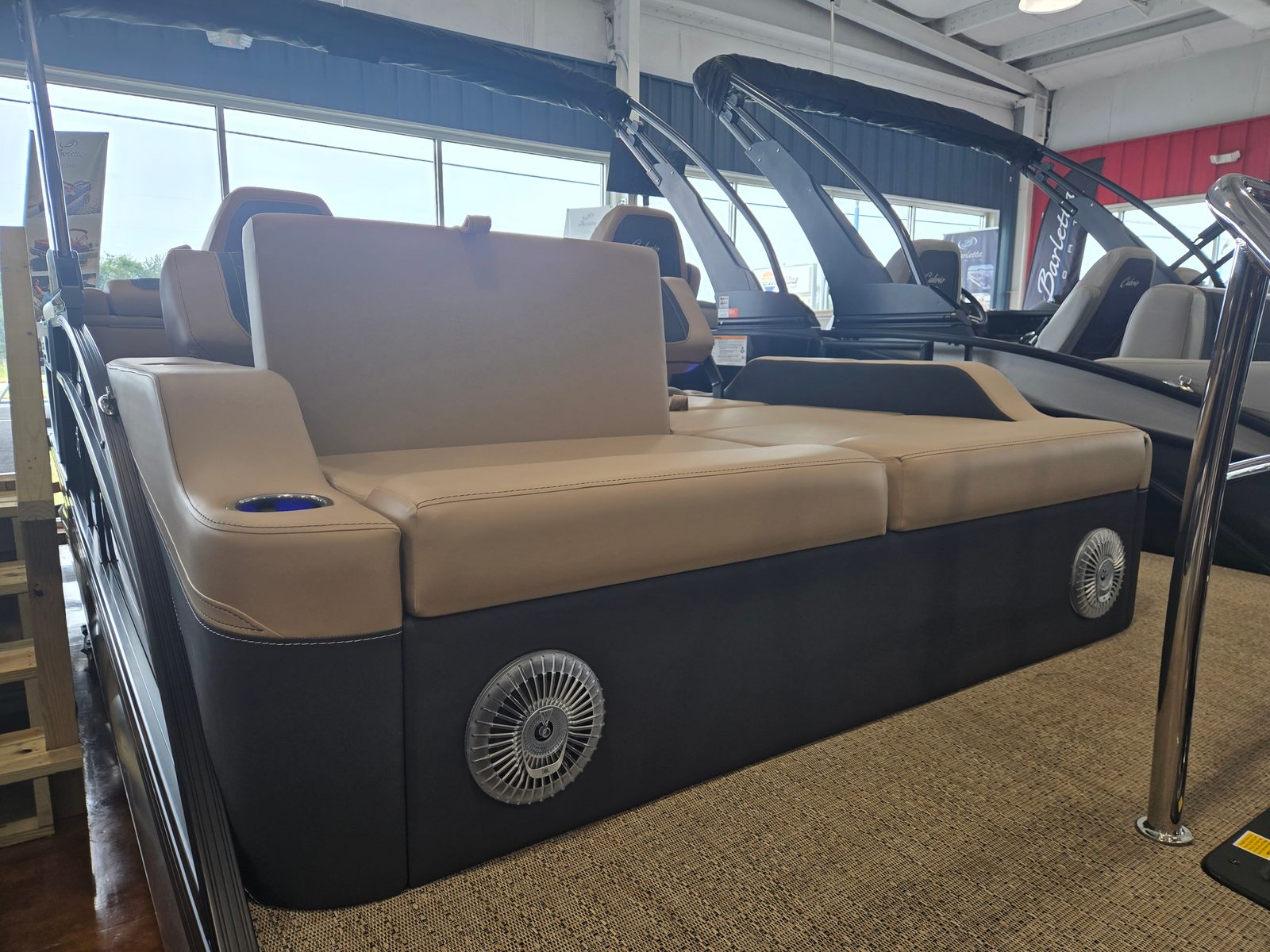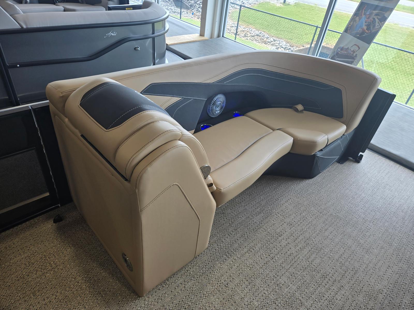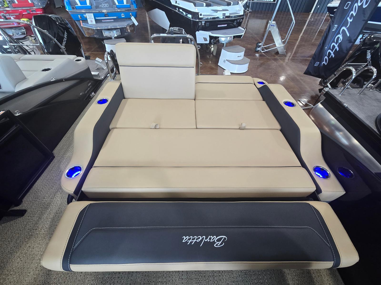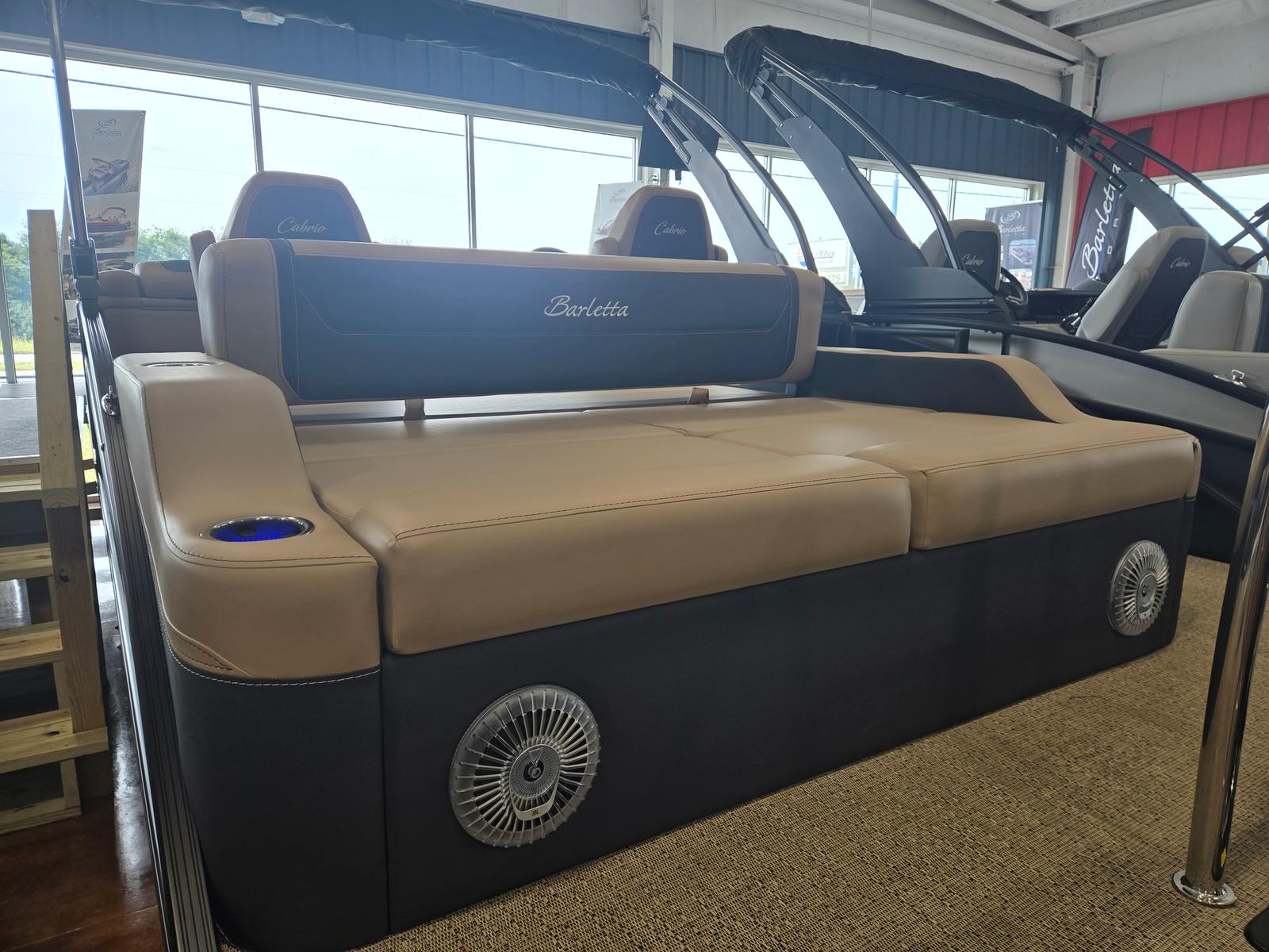 The Cabrio C22UC shines in a variety of scenarios, making it a versatile choice for any boating enthusiast. Imagine spending sunny afternoons with family, cruising across the lake while everyone enjoys the spacious seating and luxurious amenities. Host unforgettable gatherings with friends, complete with music, snacks, and laughter as you relax on the plush Carmella Tan furniture.For those who love fishing, the ample storage and stable platform make it easy to bring along gear and tackle, while the powerful engine ensures you reach your favorite spots quickly. If luxury getaways are more your style, the elegant design and premium features create a resort-like atmosphere right on the water. Whether you’re seeking adventure, relaxation, or social connection, the Barletta Cabrio C22UC adapts to your needs and enhances every experience.