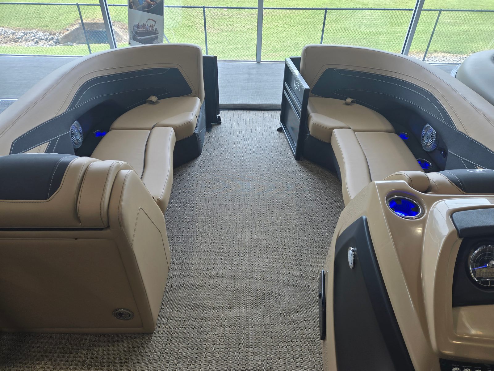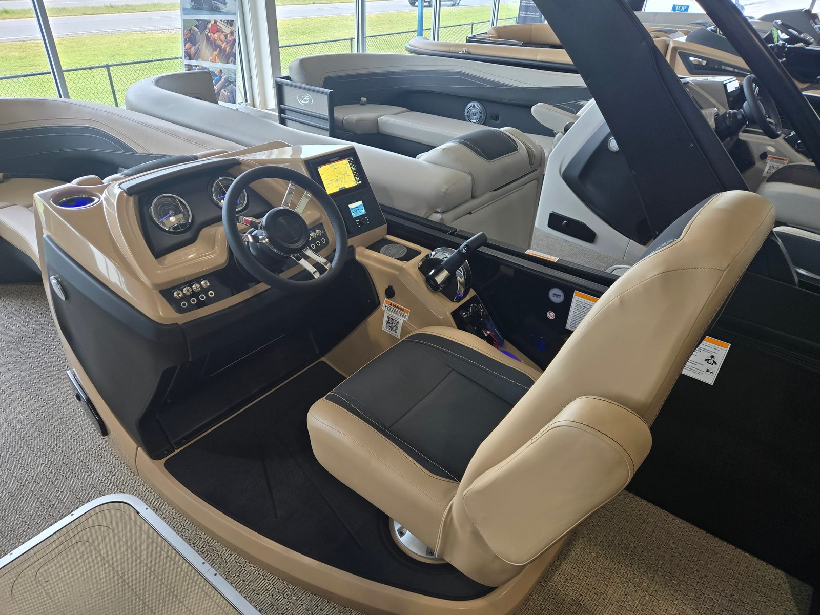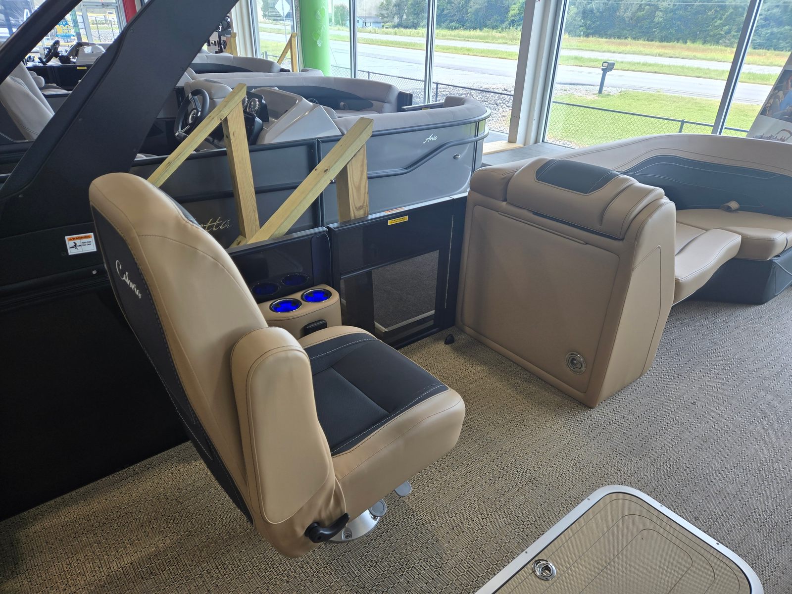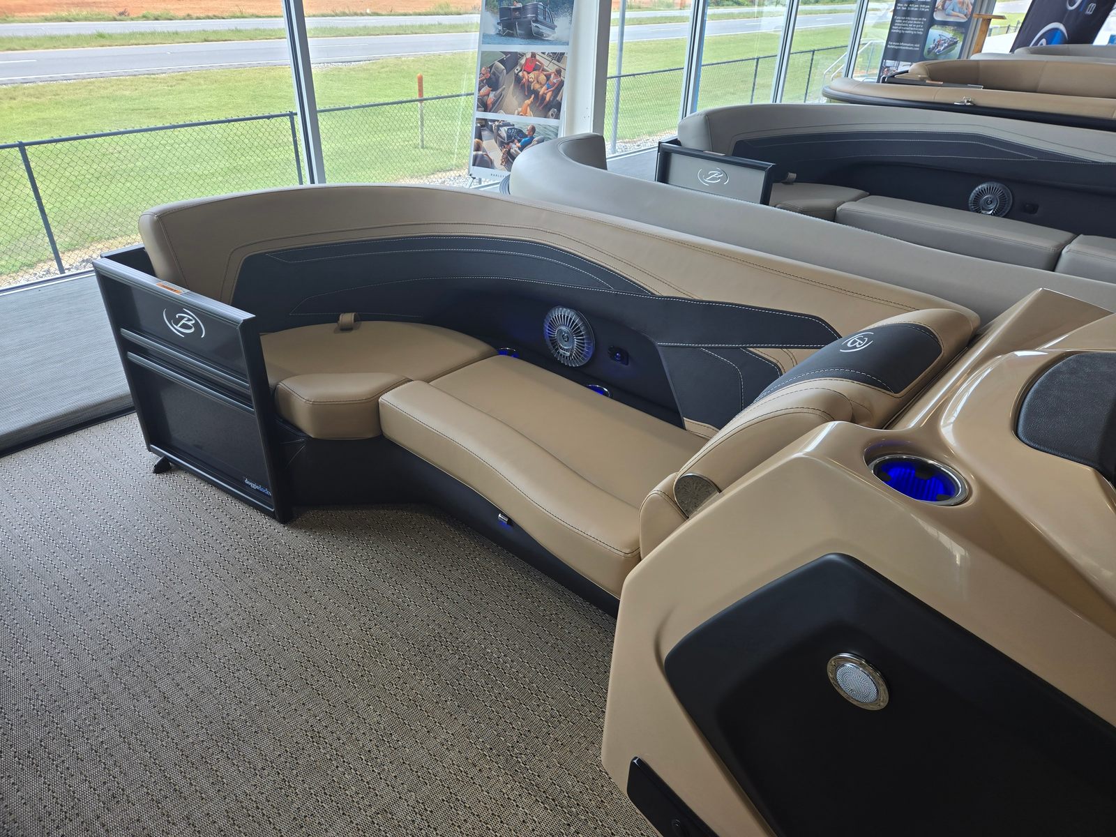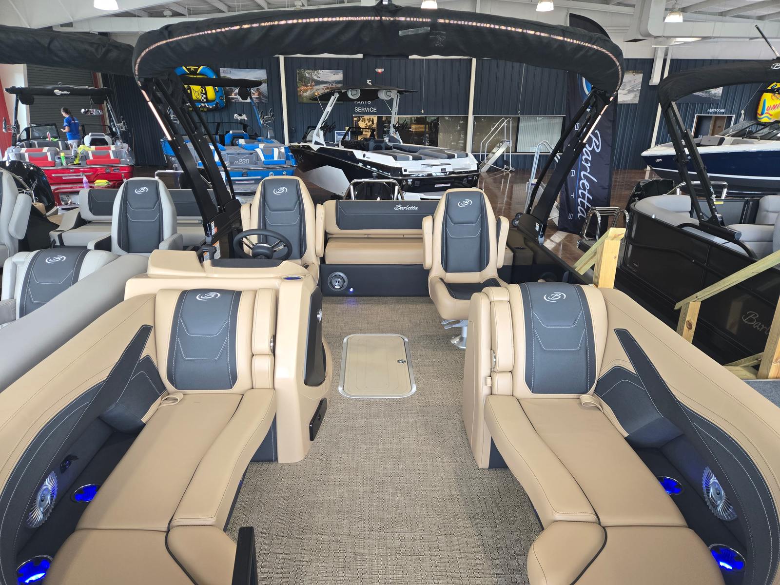 The Cabrio C22UC shines in a variety of scenarios, making it a versatile choice for any boating enthusiast. Imagine spending sunny afternoons with family, cruising across the lake while everyone enjoys the spacious seating and luxurious amenities. Host unforgettable gatherings with friends, complete with music, snacks, and laughter as you relax on the plush Carmella Tan furniture.For those who love fishing, the ample storage and stable platform make it easy to bring along gear and tackle, while the powerful engine ensures you reach your favorite spots quickly. If luxury getaways are more your style, the elegant design and premium features create a resort-like atmosphere right on the water. Whether you’re seeking adventure, relaxation, or social connection, the Barletta Cabrio C22UC adapts to your needs and enhances every experience.