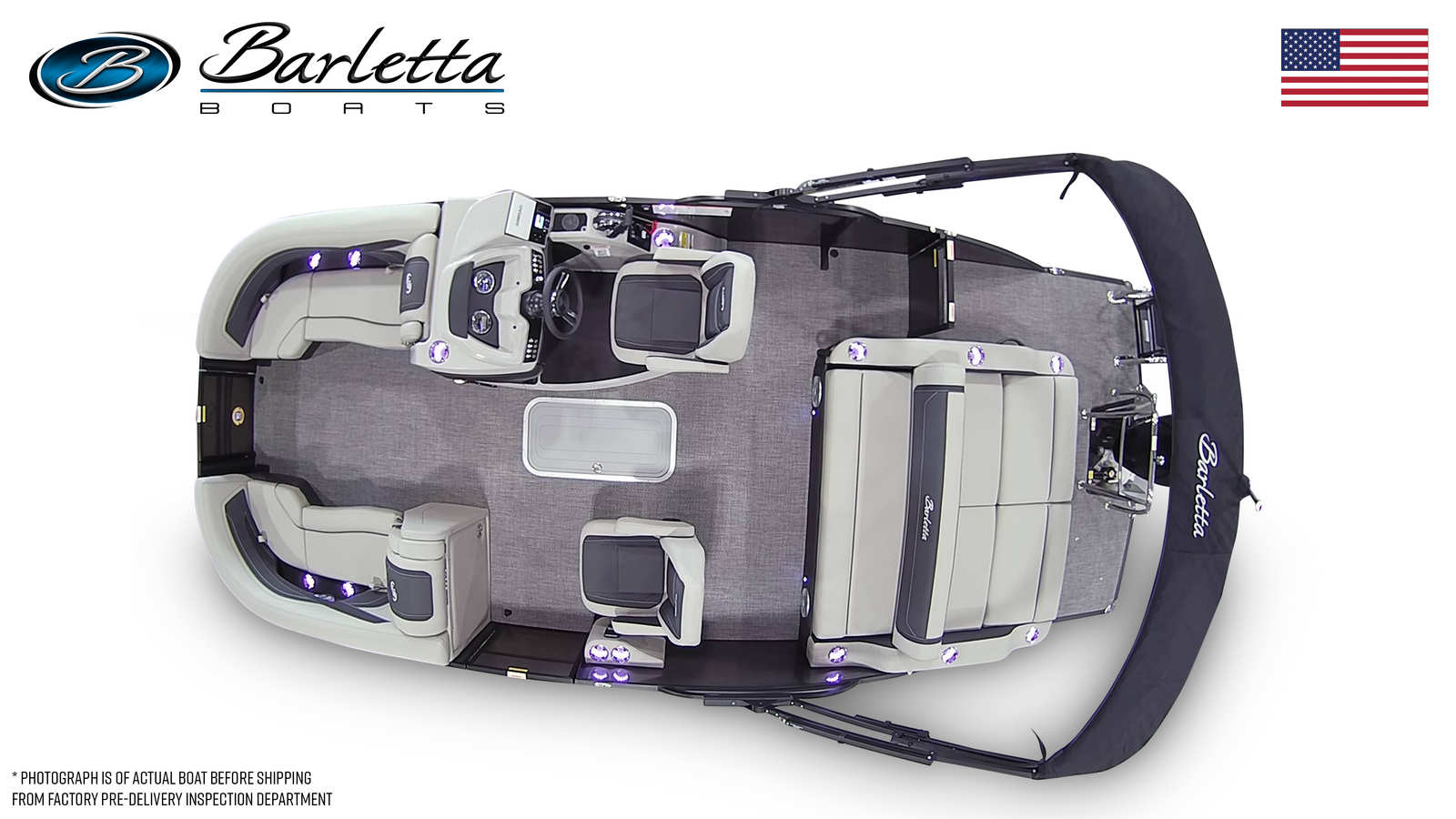 The Barletta Cabrio C22UC is packed with features designed to maximize comfort, convenience, and enjoyment. The triple toon package with midship storage provides enhanced stability and additional space for gear, making it easy to keep the deck organized and clutter-free. The railskin packages, including the Blackout Package Cabrio, add a touch of modern elegance to the exterior, while the stainless steel flag pole with an American flag offers a patriotic finishing touch.Inside, the Marquesan Gray with Onyx furniture offers plush seating and ample room for guests to relax, while the Amore Gray flooring is both stylish and easy to maintain. The thoughtful layout ensures that every inch of space is utilized efficiently, providing plenty of room for lounging, dining, or socializing. The rigging includes a stainless steel prop for optimal performance and longevity, ensuring that your investment in this Barletta boat for sale will provide years of enjoyment.