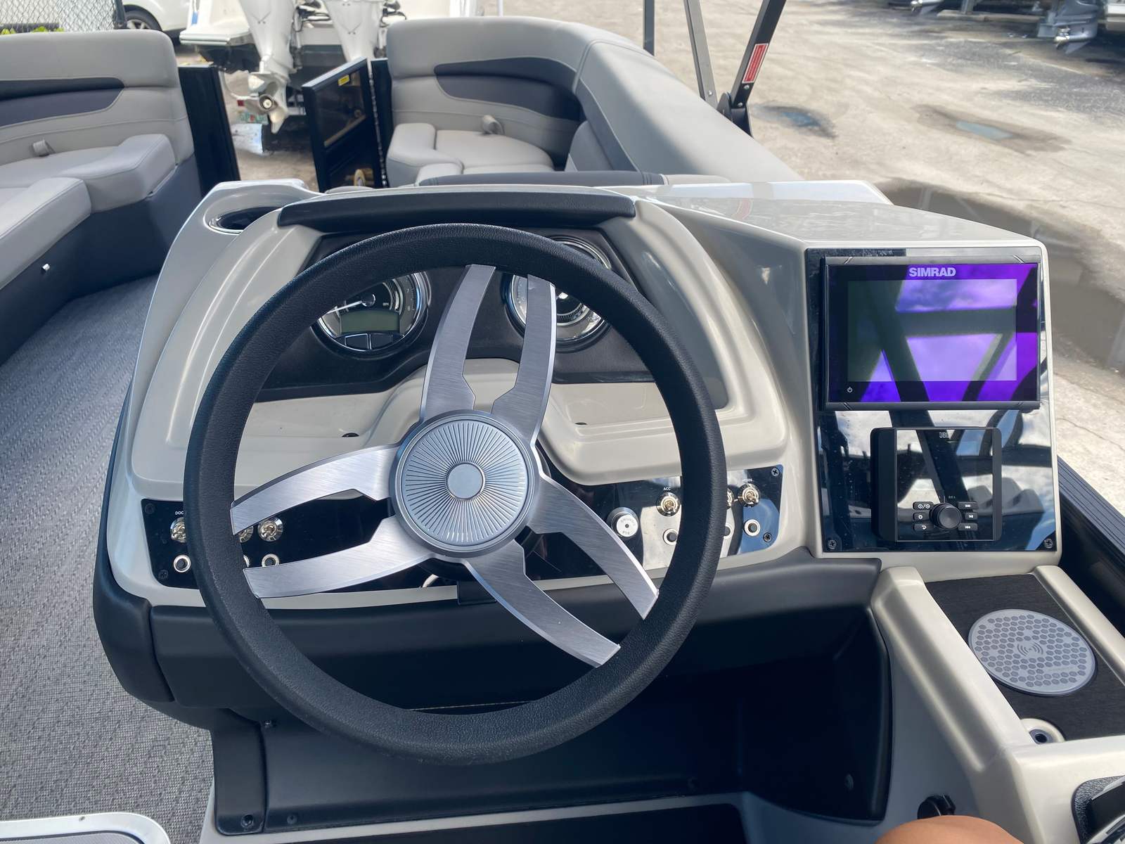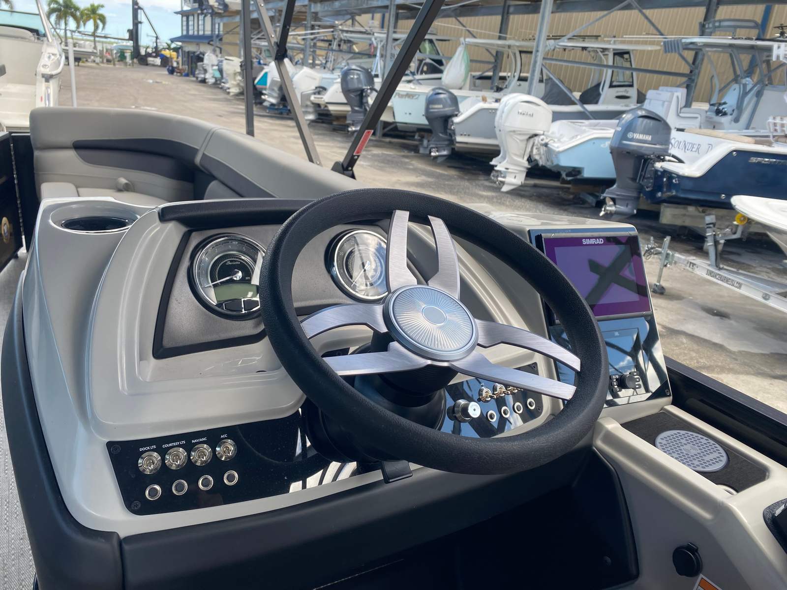 The Barletta Cabrio C24M is as practical as it is luxurious. The spacious layout provides plenty of room for gear, coolers, and water toys, making it easy to prepare for a day on the water. The double Bimini tops offer flexible shade options, keeping everyone comfortable during long outings. The durable flooring and high-quality upholstery are designed to withstand the rigors of active use, while remaining easy to clean and maintain.Docking and maneuvering are simplified by the responsive engine controls and thoughtfully designed helm, making this pontoon ideal for both experienced boaters and newcomers alike. The efficient engine setup also helps maximize fuel economy, so you can spend more time enjoying the water and less time refueling.