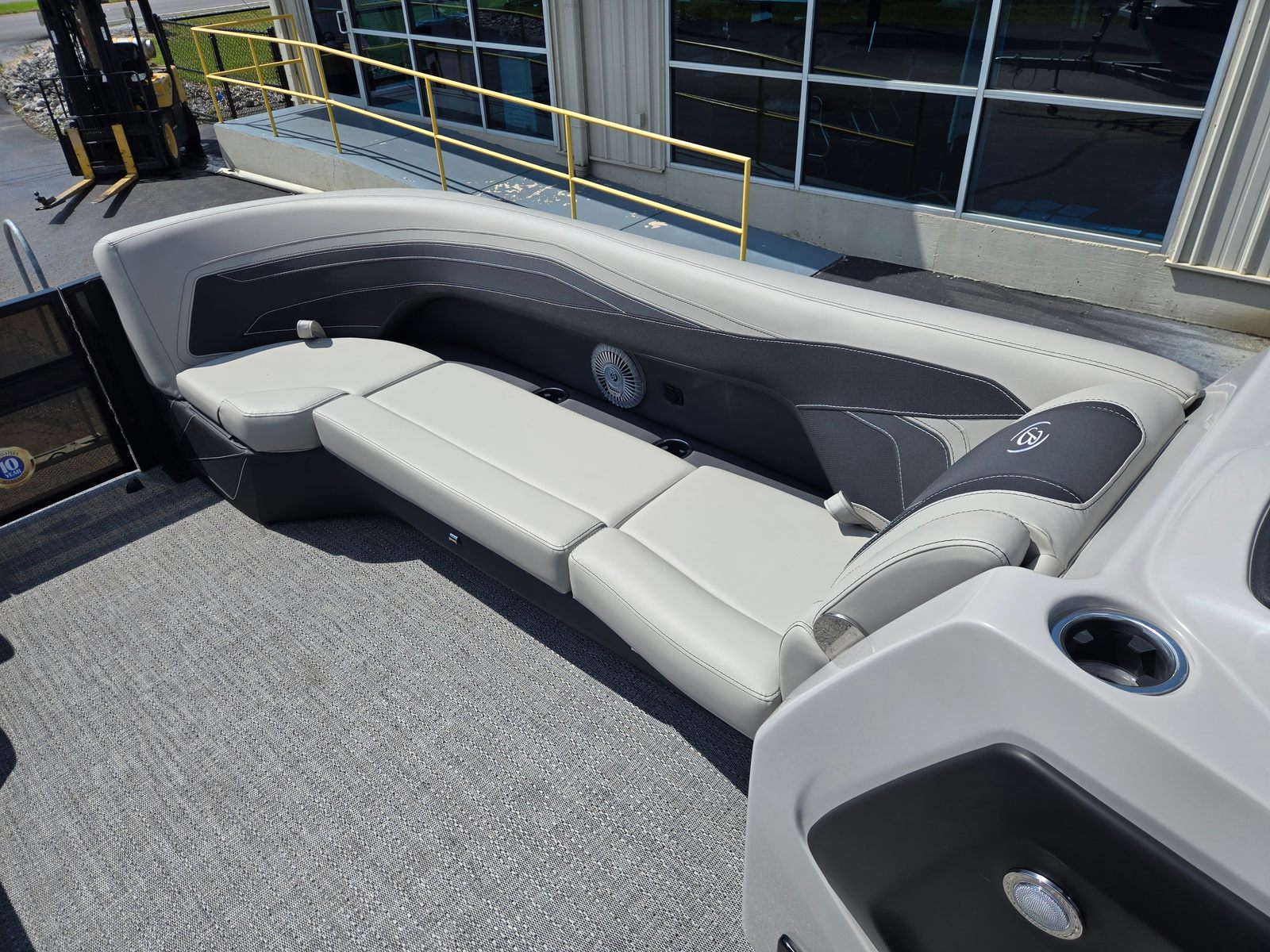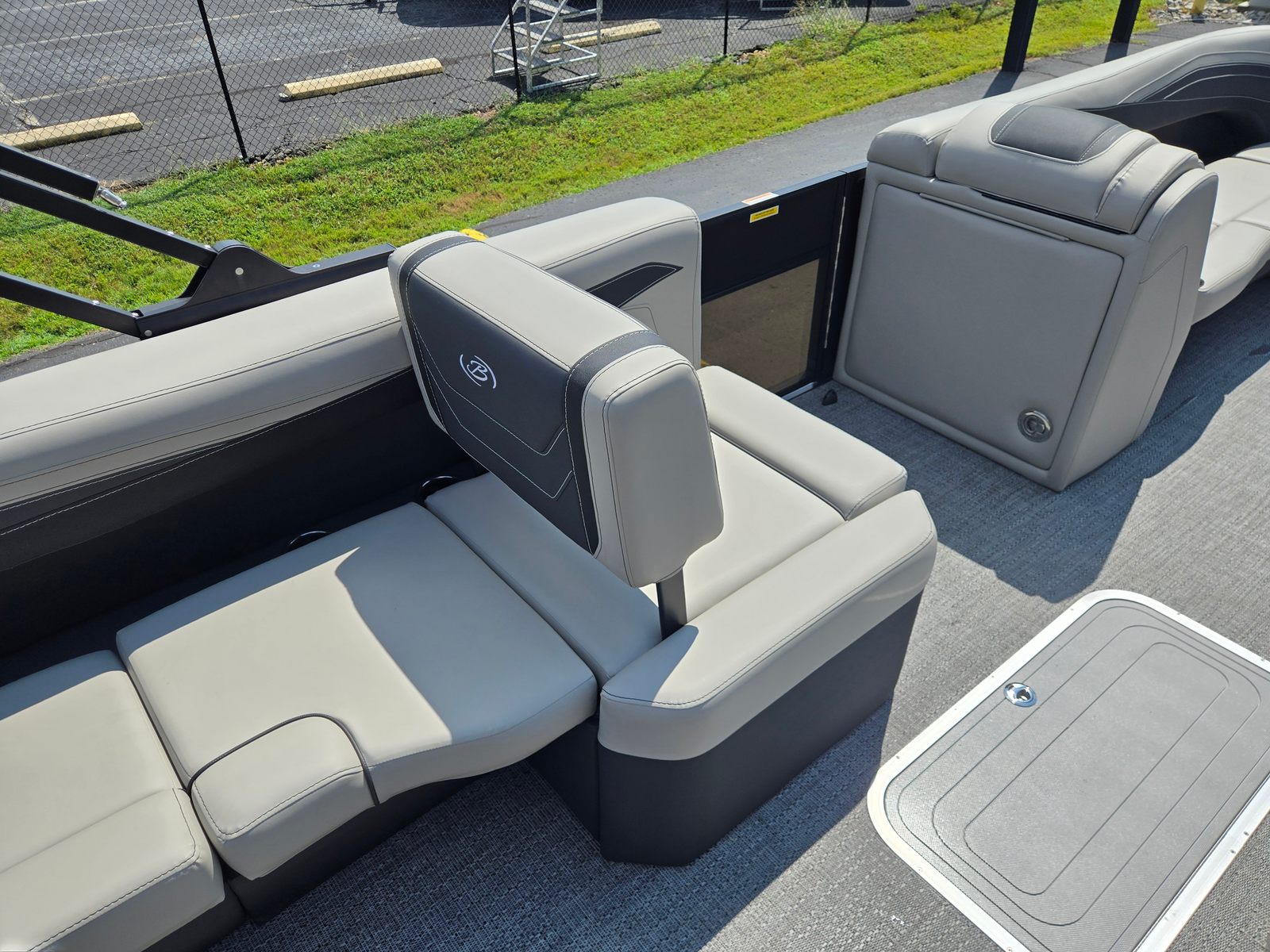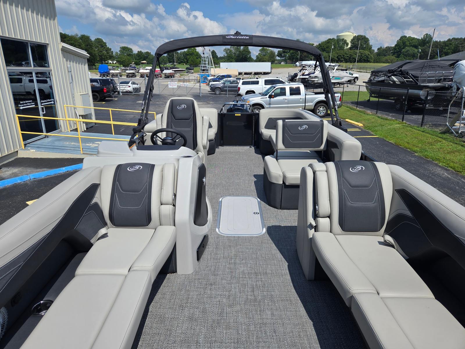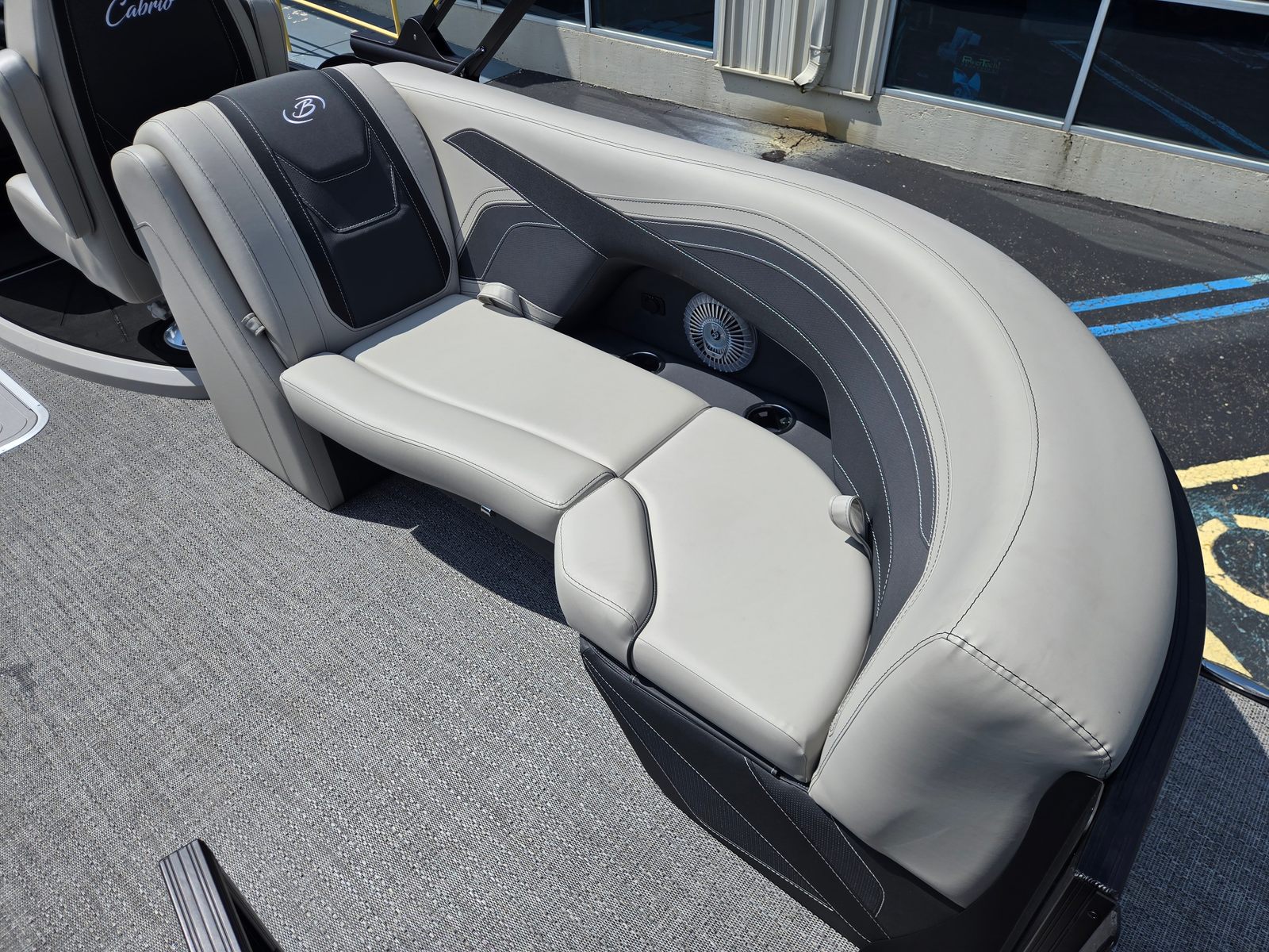 The Barletta Cabrio C24Q is packed with features that set it apart in the pontoon market. The Triple Toon Package with Midship Storage not only improves performance but also provides convenient storage solutions for gear, water toys, and personal items. The Simrad 7" G07 XSR Chartplotter/Multifunction Display offers advanced navigation and system monitoring, keeping you informed and in control throughout your journey. Exterior lighting, including white underdeck and underwater lights, enhances visibility and ambiance during evening cruises, while the Interior RGB Lighting Package Cabrio allows you to customize the mood to suit any occasion.A stainless steel flag pole with an American flag adds a patriotic touch, making your boat stand out on the water. The Railskin Packages: Blackout Package Cabrio, paired with the Black Diamond color, creates a striking visual profile that’s sure to turn heads at the marina. The Marquesan Gray with Onyx furniture is both comfortable and stylish, providing the perfect setting for relaxation and socializing.