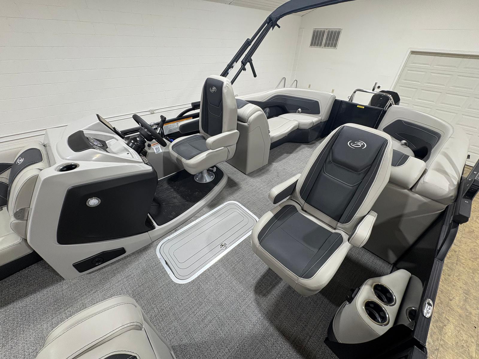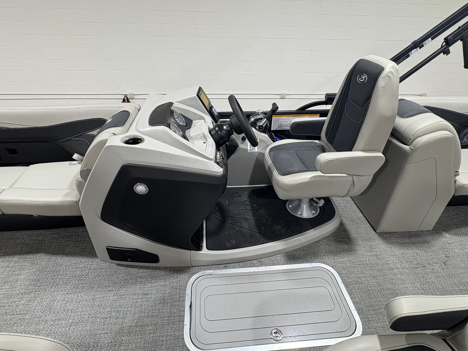 The 2026 Barletta Cabrio C24QC is packed with premium features that set it apart from other pontoon boats for sale. The Blackout Package Cabrio gives the exterior a bold, modern look, while the Black Diamond railskin adds a touch of sophistication. Inside, the Marquesan Gray with Onyx furniture provides a comfortable and stylish setting for passengers, complemented by the Amore Gray flooring that is both durable and easy to maintain.One of the standout features of this model is the Triple Toon Package with midship storage, offering enhanced stability and ample space for storing gear, water toys, or picnic essentials. The rigging includes a stainless steel prop for optimal performance and durability. For those who appreciate attention to detail, the stainless steel flag pole with an American flag adds a patriotic touch to your boating adventures.The interior RGB lighting package creates a vibrant and customizable atmosphere, perfect for evening cruises or entertaining guests after sunset. Every element of the Cabrio C24QC is designed to maximize comfort, convenience, and enjoyment on the water.