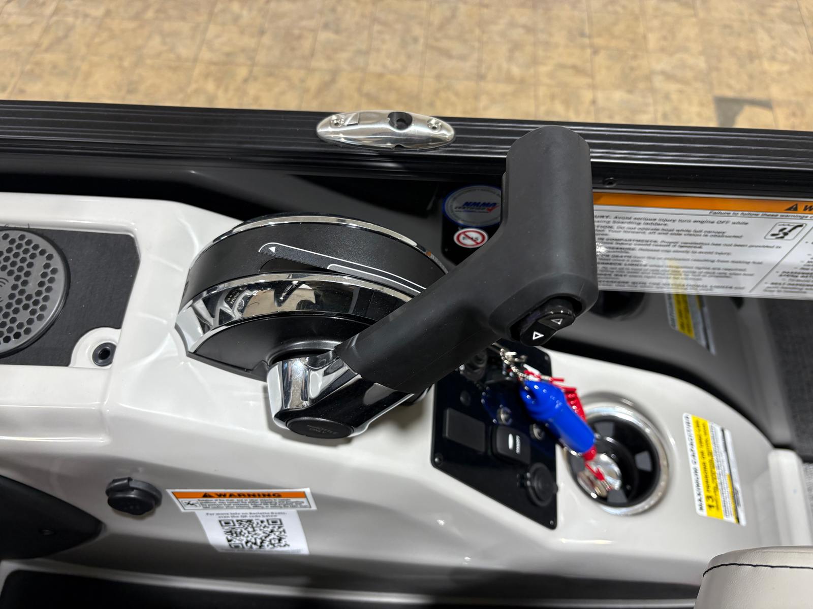 At the heart of the Cabrio C24QC is a powerful Mercury 250L FourStroke engine, delivering an impressive 250 horsepower with only 1 engine hour. This robust engine ensures smooth acceleration, responsive handling, and plenty of power for cruising, watersports, or simply exploring your favorite waterways. The pre-rig Mercury mechanical system with power assist (200HP) and stainless steel prop further enhance the boat’s performance, providing effortless control and reliability. Whether you are gliding across calm waters or picking up speed for a thrilling ride, the Cabrio C24QC offers a dynamic boating experience.