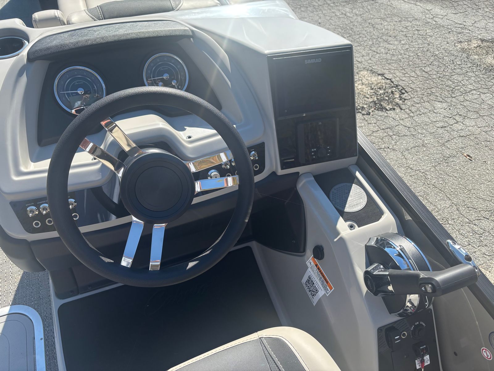 The 2026 Barletta Cabrio C24QC is packed with special features that elevate your boating experience. The Railskin Packages include the striking Blackout Package Cabrio, complemented by a Champagne color accent and Bohemian Blue railskin color, giving the exterior a sophisticated and modern look. A stainless steel flag pole with an American flag adds a touch of patriotism and style, making your boat stand out on the water.Inside, the Marquesan Gray furniture with Onyx accents creates a chic and inviting atmosphere, perfect for relaxing or entertaining guests. The Amore Gray flooring is both elegant and practical, designed to withstand the rigors of active days while maintaining a luxurious feel underfoot. The interior RGB lighting package allows you to set the mood for any occasion, whether it’s a sunset cruise or a lively evening celebration.For those who value storage and convenience, the Triple Toon Package with midship storage ensures ample space for all your gear, water toys, and essentials. This thoughtful design feature keeps the deck clutter-free and your belongings secure, so you can focus on enjoying your time on the water.