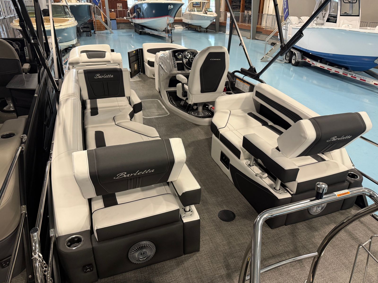 Owning the Barletta Corsa 23M pontoon means embracing a lifestyle of fun, relaxation, and social connection. The spacious layout is perfect for hosting family and friends, offering ample seating and room to move about. The premium materials and thoughtful design details create an environment where everyone can unwind and enjoy the journey. Whether you are sunbathing, sharing a meal, or simply cruising along the shoreline, this pontoon boat for sale delivers comfort and enjoyment at every turn.The powerful Mercury 300L Verado V8 engine ensures that you have the performance needed for water sports, fast cruising, or leisurely exploration. The advanced steering and digital controls make piloting the boat a breeze, allowing you to focus on making memories rather than managing complicated systems. With its striking appearance and luxurious appointments, the Corsa 23M is sure to be the centerpiece of your boating adventures.