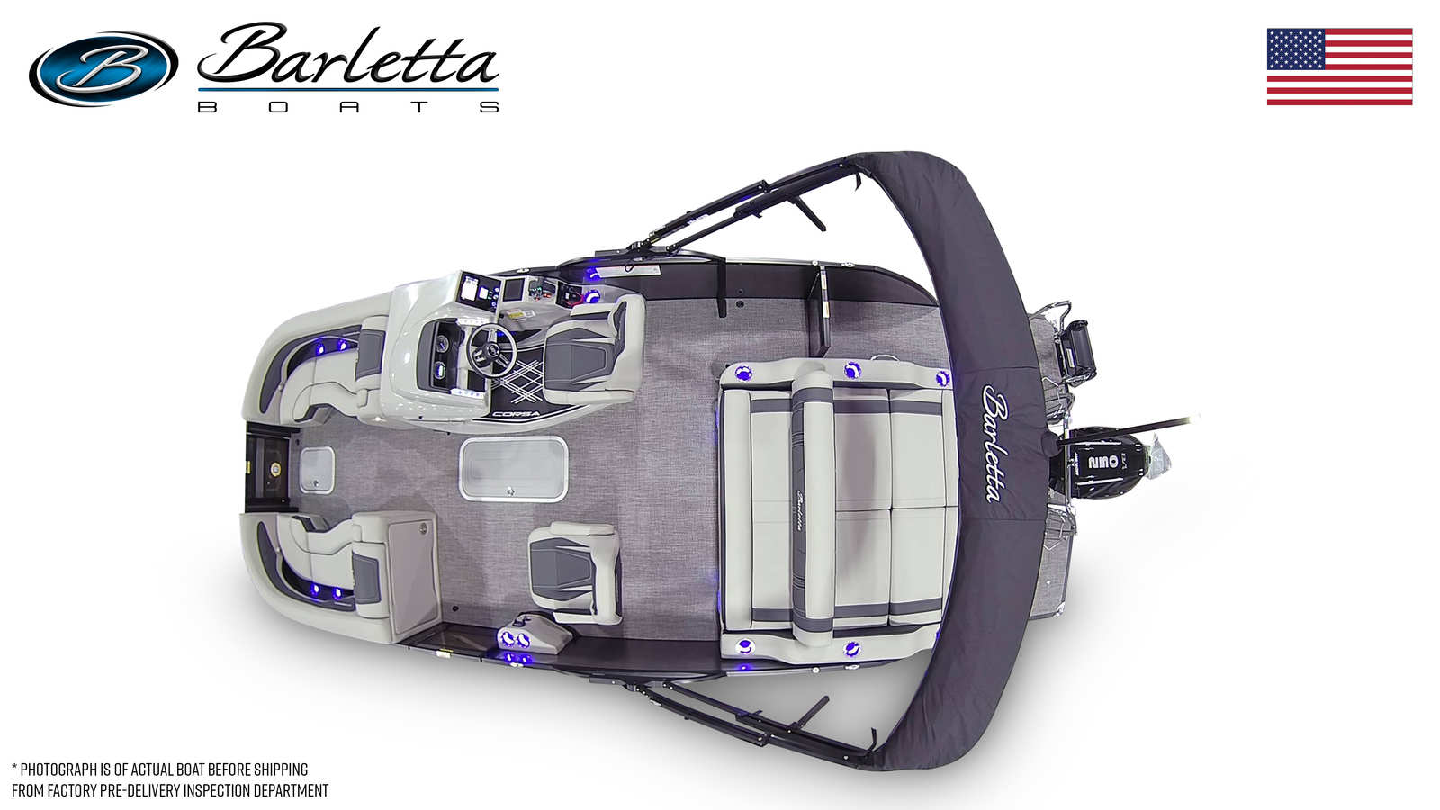 In summary, the 2026 Barletta Corsa 23UC is a remarkable pontoon boat for sale that offers the perfect blend of luxury, performance, and practicality. With its powerful Mercury 250L VERADO V8 engine, stunning Gray Moonstone and Winter White Railskin, Blackout Package Corsa, plush Marquesan Gray furniture, Amore Gray flooring, advanced digital controls, and elegant exterior lighting, this boat is designed to impress and delight. Whether you’re seeking adventure, relaxation, or unforgettable memories with family and friends, the Corsa 23UC delivers on every front. Don’t miss your chance to own this exceptional Barletta boat for sale—contact your local dealer today to learn more and start your journey to endless fun on the water!