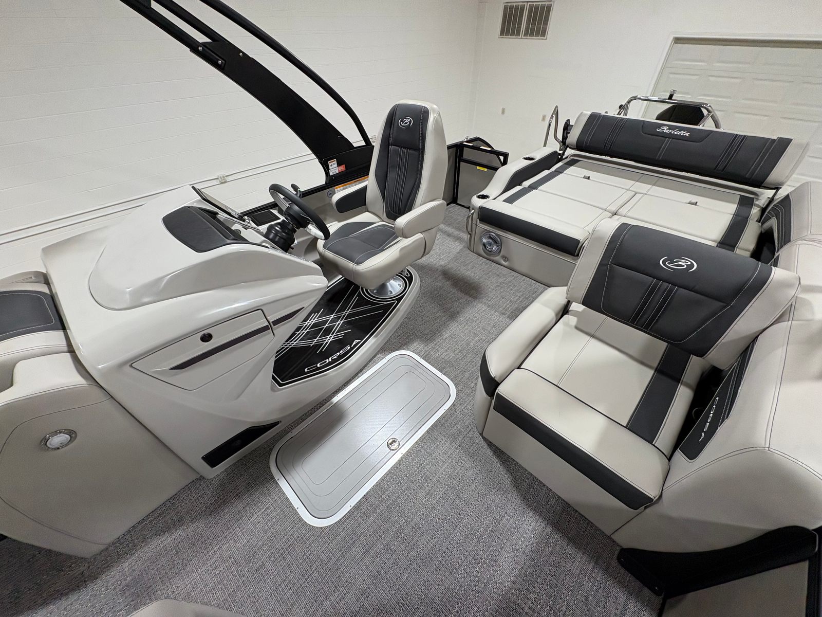 Owning the Barletta Corsa 25U means embracing a lifestyle of fun, relaxation, and adventure. This pontoon boat is designed with social gatherings in mind, offering spacious seating and a layout that encourages conversation and connection. The luxurious furniture and ample deck space create an inviting atmosphere for entertaining guests, enjoying family meals, or simply lounging in the sun. The advanced steering and digital controls make piloting the boat a breeze, so you can focus on making memories rather than managing complicated systems.The combination of high-performance engineering and thoughtful design ensures that every outing is smooth, comfortable, and enjoyable. Whether you are cruising along the shoreline, anchoring at your favorite swimming spot, or exploring new waterways, the Corsa 25U delivers a level of comfort and excitement that is hard to match.