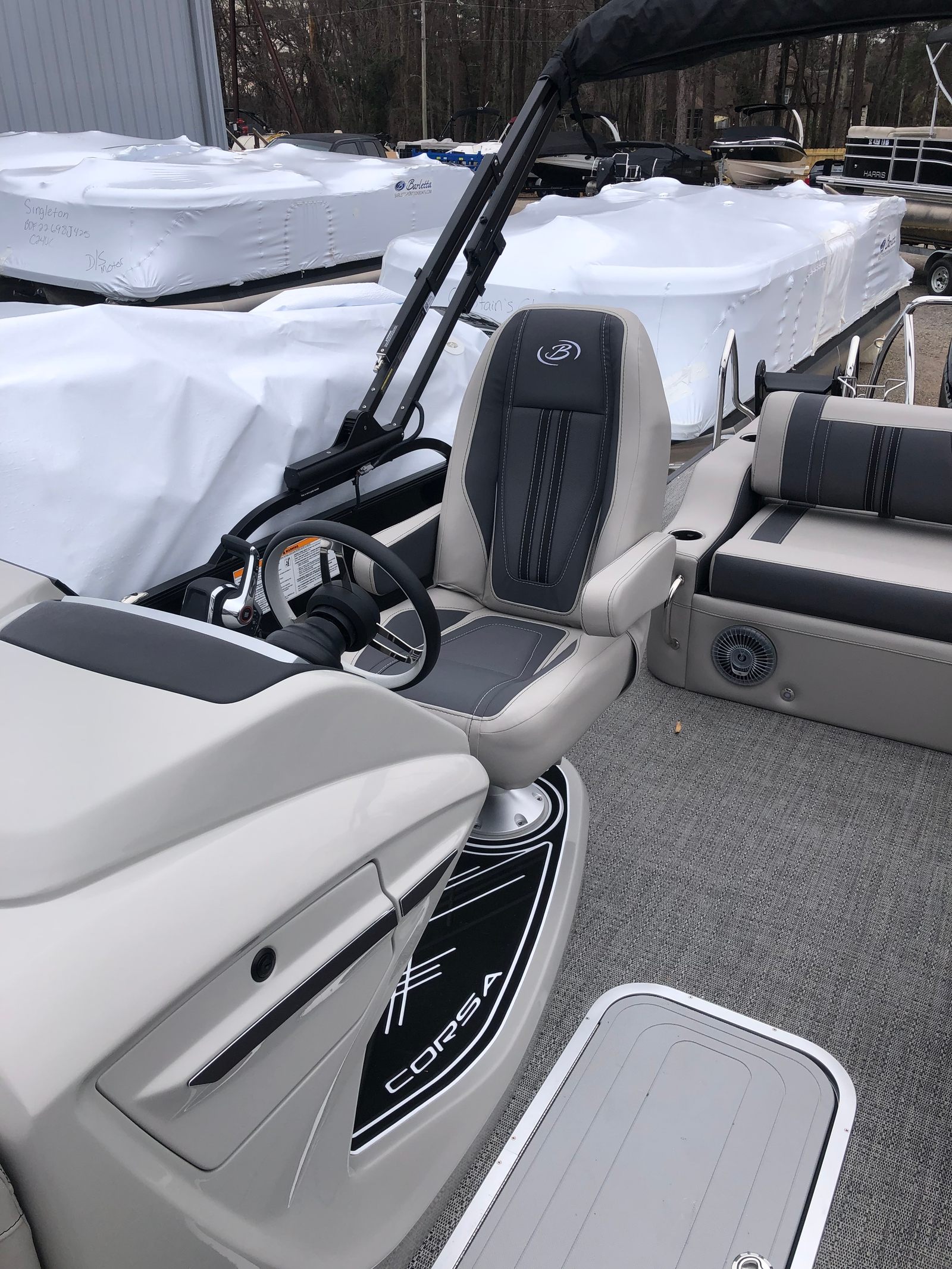 Owning the Barletta Corsa 25UC means embracing a lifestyle of fun, relaxation, and social connection. The spacious layout and premium furniture invite you to lounge in comfort, whether you’re sunbathing, enjoying a picnic, or sharing stories with friends. The advanced steering and digital controls make piloting the boat a breeze, allowing you to focus on the joy of the journey rather than the mechanics. The midship storage keeps your essentials within easy reach, so you can spend more time enjoying the water and less time searching for gear. The sleek design and blackout package ensure you’ll stand out wherever you go, making every outing a memorable event.