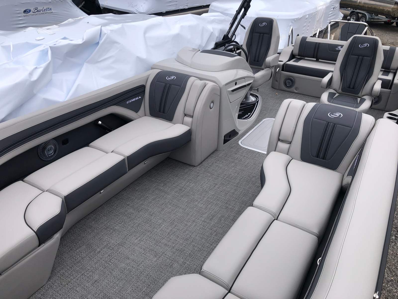 Step aboard the 2025 Barletta Corsa 25UC and discover a pontoon that redefines what it means to enjoy life on the water. Measuring an impressive 27 feet in length, this pontoon offers ample space for friends and family to spread out and soak up the sun. The new condition ensures you’re getting the latest in design, technology, and comfort, making this Barletta boat for sale a standout choice for discerning buyers. The Corsa 25UC’s striking Railskin Color in Black Diamond, complemented by a Gray Moonstone accent, gives it a bold, contemporary look that turns heads at every marina. The Blackout Package Corsa further enhances its visual appeal, creating a sophisticated and sporty profile that’s sure to impress.