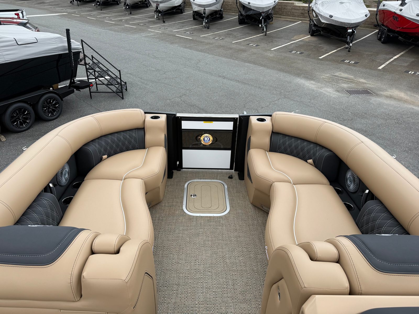 The 2026 Barletta Lusso L23M is a new pontoon that stretches an impressive 25.5 feet in length, offering ample space for passengers to unwind and enjoy the open water. With its sleek lines and modern design, this pontoon boat commands attention at every dock and marina. The Lusso L23M is meticulously crafted to provide both comfort and functionality, ensuring that every journey is as enjoyable as the destination. Its spacious deck layout is perfect for socializing, sunbathing, or simply taking in the scenic views, making it a versatile choice for a wide range of boating enthusiasts.