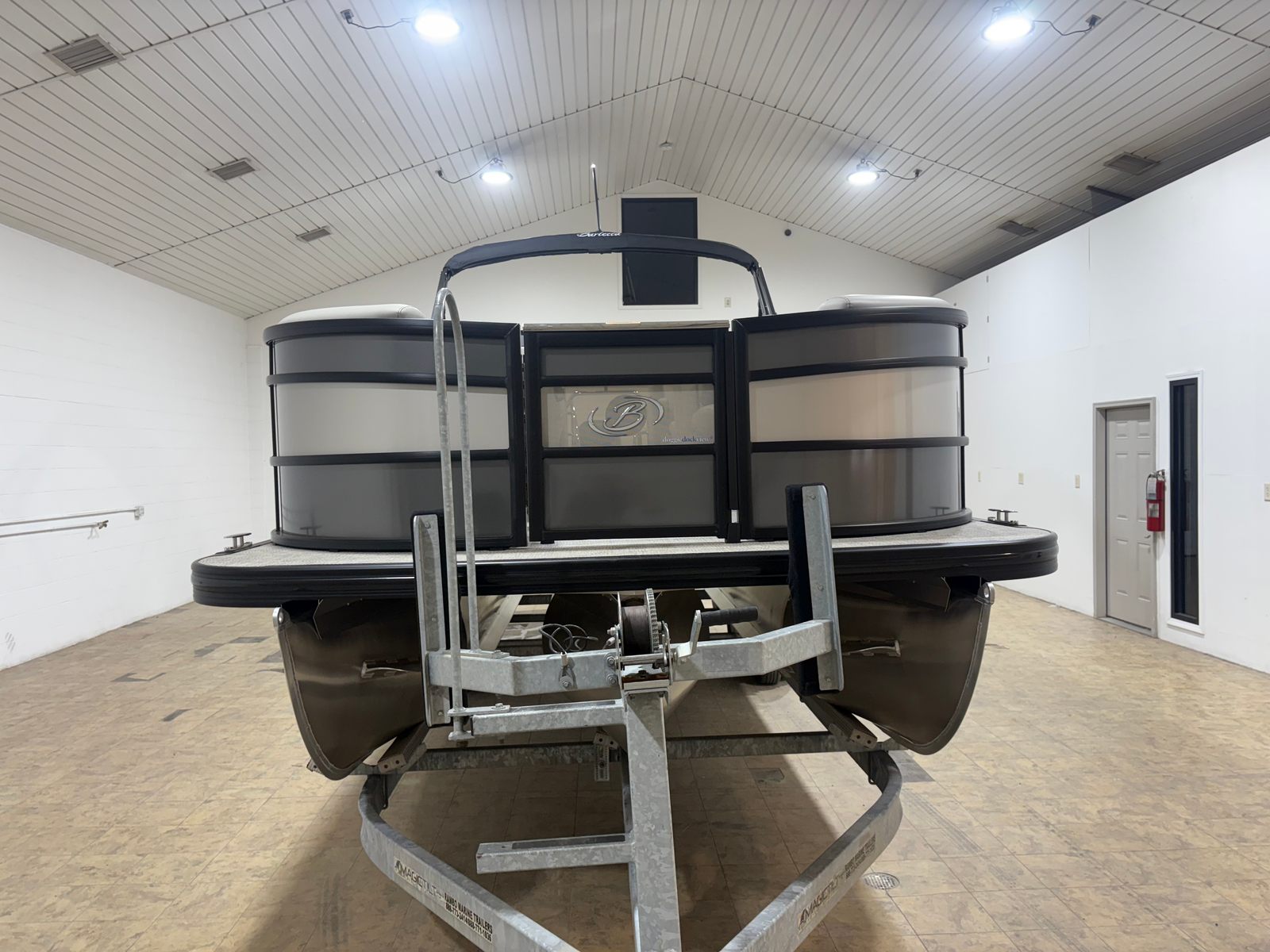 The 2026 Barletta Lusso L23QCSS is a brand-new pontoon boat that stretches an impressive 25.5 feet in length, offering ample space for relaxation, entertainment, and fun. With its sleek lines and contemporary design, this pontoon boat commands attention at every dock and on every lake. The Gray Moonstone sweep color, accented by a touch of Champagne, gives the Lusso L23QCSS a modern yet timeless appeal, while the Lusso Blackout Package adds a bold, sophisticated edge. The Marquesan Gray with Onyx furniture and Amore Gray flooring create a welcoming and stylish environment, making every moment on board feel like a luxury getaway.