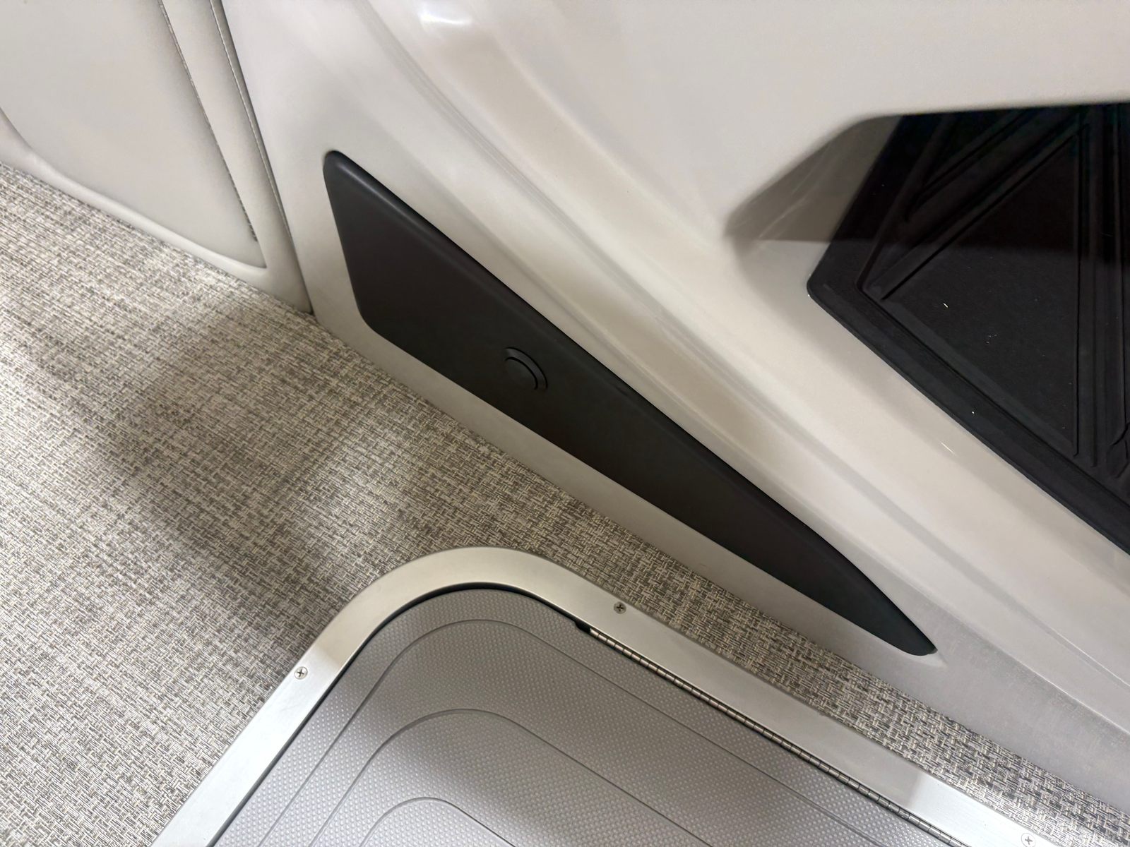 The 2026 Barletta Lusso L23QCSS is packed with premium features designed to enhance your time on the water. The Lusso Blackout Package gives the exterior a striking, upscale look, while the Marquesan Gray with Onyx furniture offers plush seating and a refined atmosphere. The Amore Gray flooring is both stylish and practical, providing a comfortable surface that stands up to the elements. The clipped playpen cover with poles offers protection from the sun and rain, ensuring your pontoon stays in pristine condition. For those who love to cruise after dark, the exterior lighting package includes white underdeck and underwater lights, creating a magical ambiance and improving visibility during evening adventures.