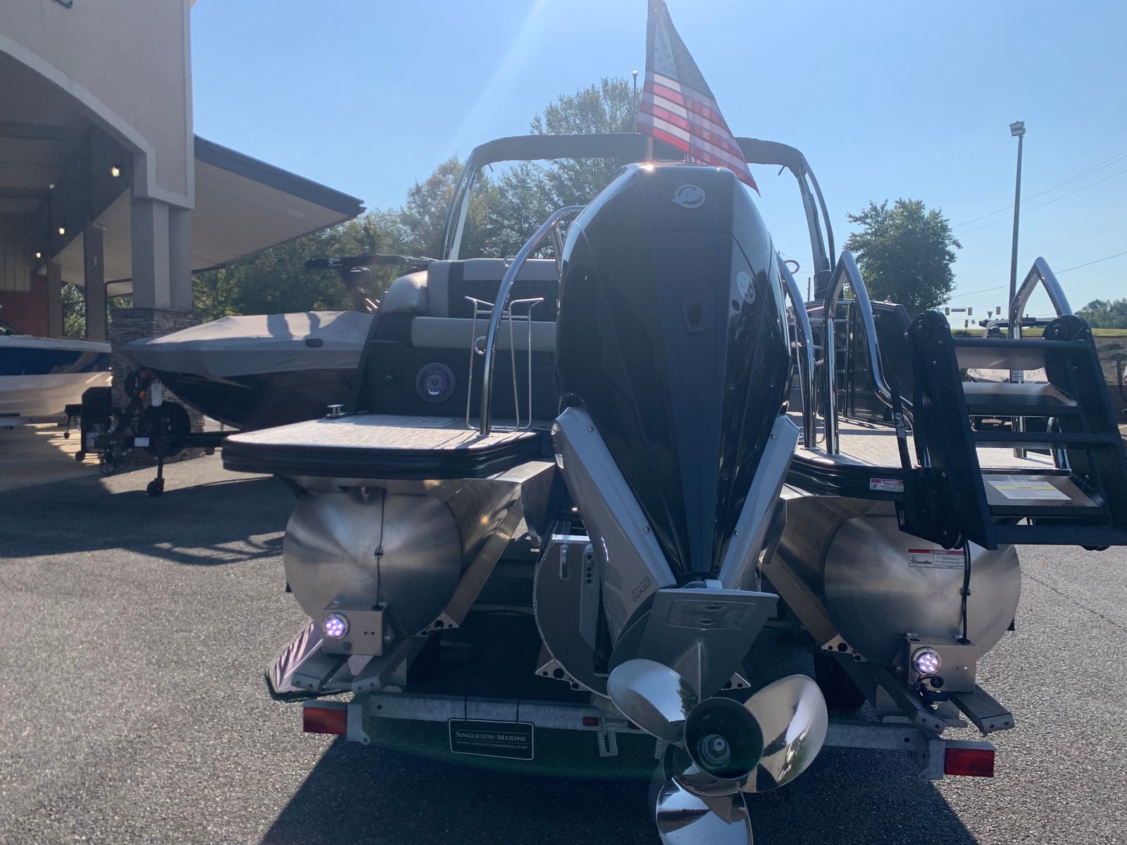 The 2026 Barletta Lusso L23U is loaded with premium features designed to enhance your boating experience. The Blackout Package Lusso Railskin gives the exterior a bold, modern look, complemented by the Gray Moonstone sweep color and Black Diamond accent color for a sophisticated finish. The Marquesan Gray with Onyx furniture creates a luxurious and inviting atmosphere, while the Amore Gray flooring adds both style and durability underfoot.For those who appreciate cutting-edge technology, the Lusso L23U is equipped with digital gauges for precise monitoring and control. The rigging includes a stainless steel prop for optimal performance and longevity. The Sport Bimini, installed in place of the standard bimini, provides ample shade and protection from the sun, ensuring comfort during long days on the water. Exterior lighting, including white underdeck and underwater lights, not only enhances the boat’s visual appeal but also adds safety and ambiance for evening cruises.