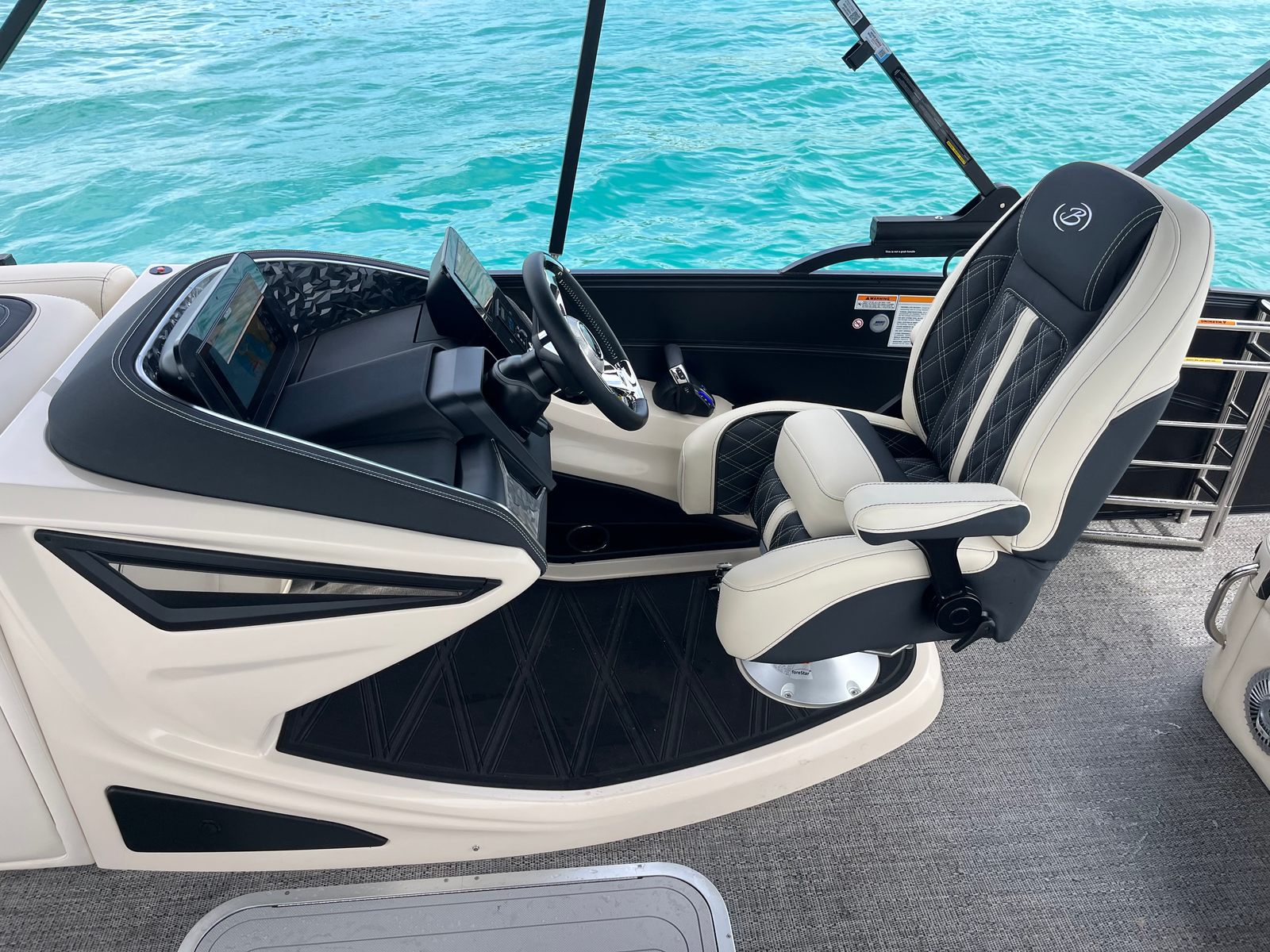 The Barletta Lusso L23U is packed with features that elevate your boating experience to new heights. Its spacious deck layout provides plenty of seating options, perfect for socializing, sunbathing, or enjoying a meal with loved ones. The high-quality upholstery and ergonomic design ensure maximum comfort throughout your journey. Innovative storage solutions are integrated throughout the boat, making it easy to stow away gear, water toys, and personal items without sacrificing space or style.Advanced technology is seamlessly woven into the Lusso L23U’s design, offering intuitive controls and modern conveniences that enhance safety and enjoyment. The pontoon’s sturdy construction and premium materials guarantee longevity and durability, so you can make memories for years to come. Every aspect of this Barletta boat for sale is engineered to provide a superior on-water experience, from its smooth ride to its luxurious finishes.