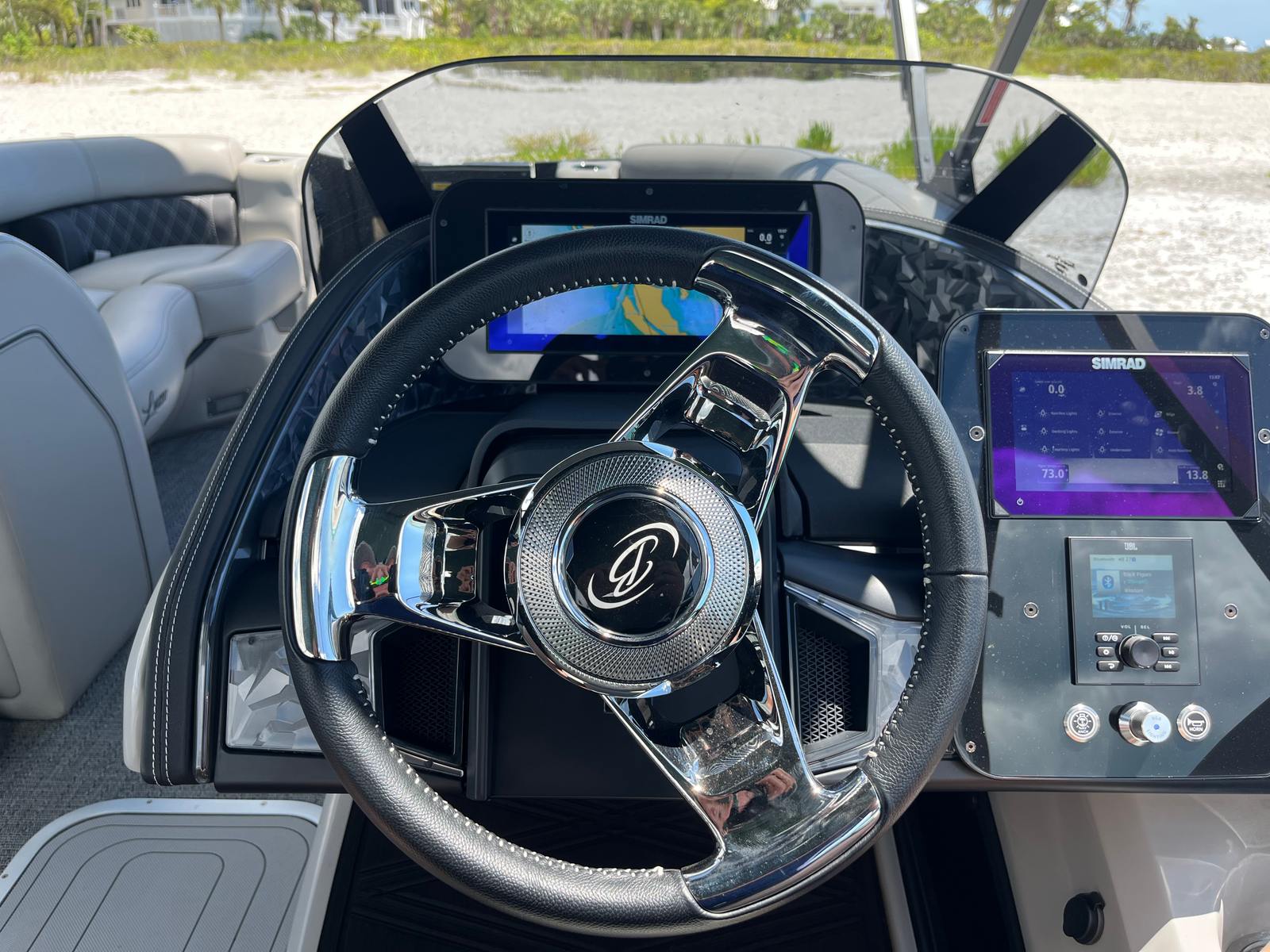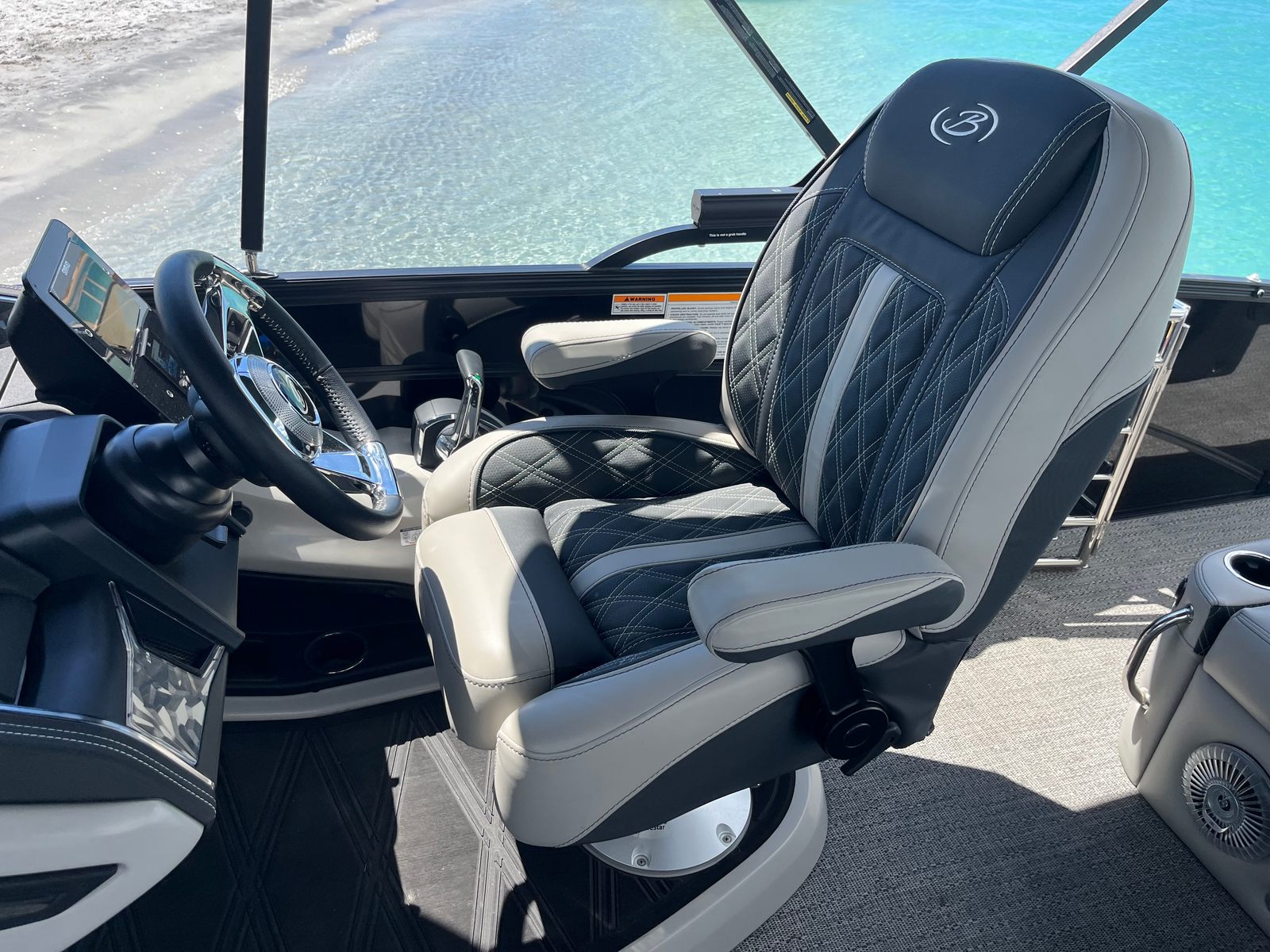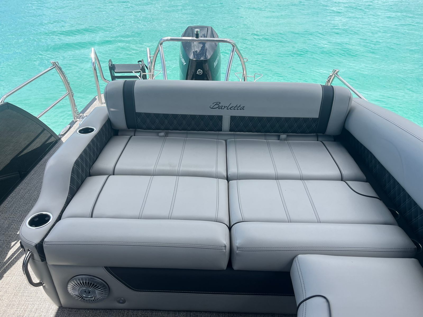Power and precision come together in the Barletta Lusso L23U, thanks to its robust Mercury (D) 350L V10 Verado engine. With a commanding 350 horsepower at your fingertips, this pontoon delivers exhilarating acceleration and smooth cruising, making it ideal for a variety of water activities. The Mercury Digital Pre-Rig for V10 and the expertly rigged engine with V10 prop ensure optimal performance, responsiveness, and efficiency. Whether you are gliding across calm waters or picking up speed for watersports, the Lusso L23U’s advanced propulsion system provides a seamless and enjoyable ride.