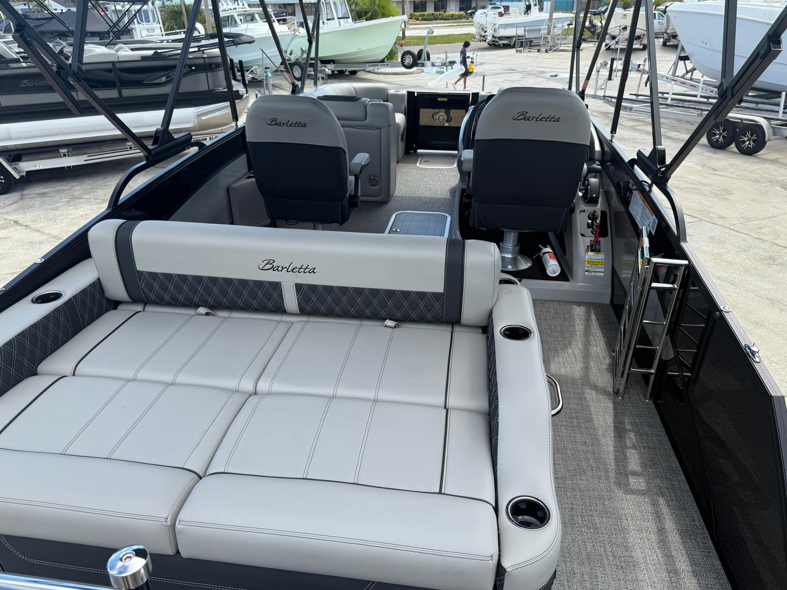 In summary, the 2026 Barletta Lusso L23UC Pontoon is a standout option for anyone seeking a pontoon boat for sale that delivers on every front. With its powerful Mercury Verado V8 engine, advanced steering and digital systems, luxurious Marquesan Gray/Onyx furniture, Amore Gray flooring, and exclusive Coastal Edition Lusso features, this Barletta boat for sale offers an unparalleled boating experience. The striking Black Diamond and Champagne color scheme, Blackout Package Lusso, and double bimini setup further enhance its appeal, making it a true masterpiece on the water.Don’t miss your chance to own this exceptional pontoon boat. Experience the perfect blend of luxury, performance, and versatility with the Barletta Lusso L23UC. Contact your local dealer today to learn more and take the first step toward unforgettable adventures on the water.